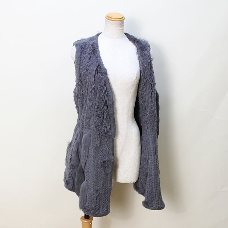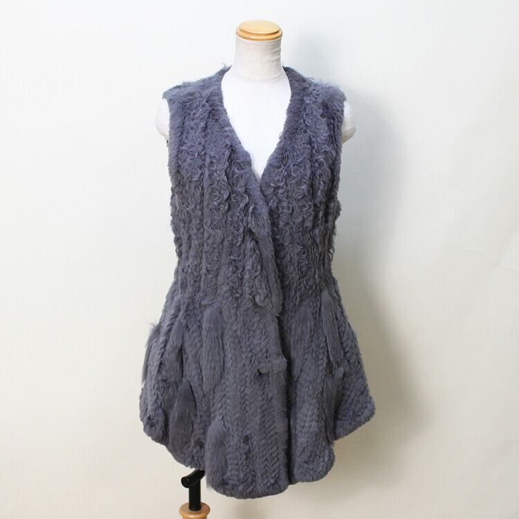 RB5226AGY1037 フォックス ・ ラム ・ ラビット 編み込み ファー ベスト グレー 送料無料 レディース ギフト プレゼント