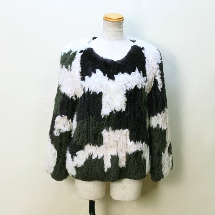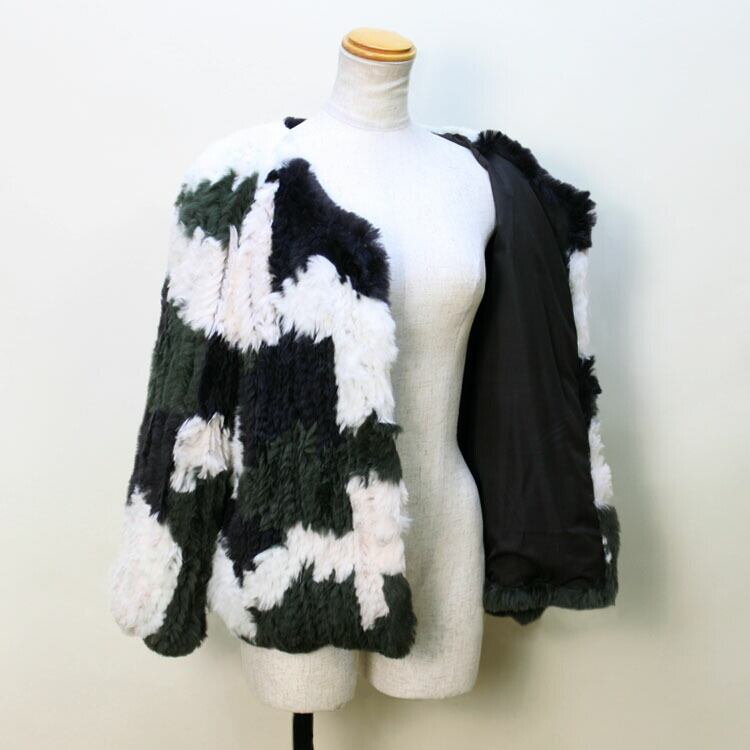 RB563BAWP2063 ラビット 編み込み ファー ジャケット ミックスカラー ホワイト カーキ パープル 送料無料 レディース ギフト プレゼント