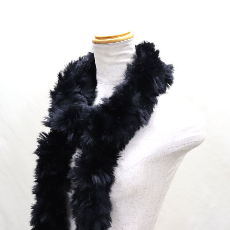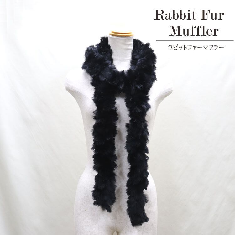 ラビット ファー マフラー ロング テープ ブラック レディース ギフト プレゼント