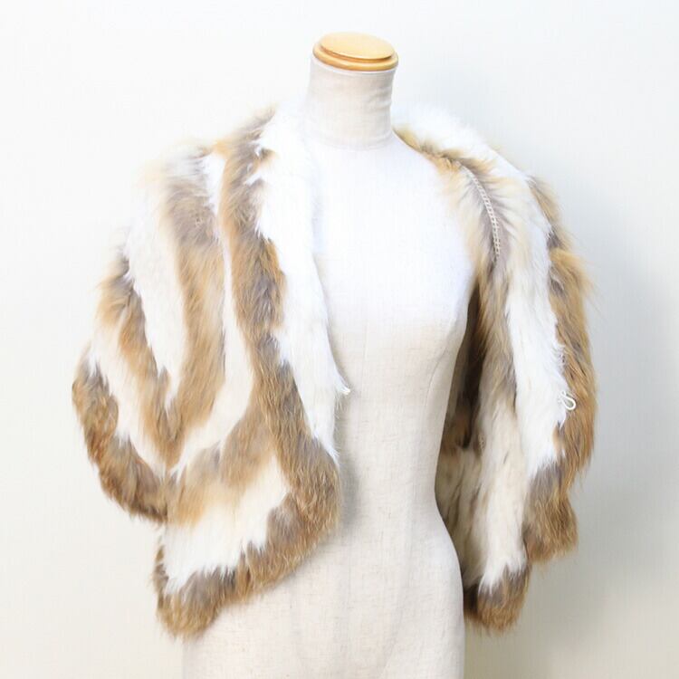 【サイズ(最大部を計測)】身幅約96cm 着丈約50cm 裄丈約50cm 【重さ】約355g 【ポケット】無し 【留め具】ホック×1 【裏地】無し 【素材】ラビット、レッドフォックス 【生産国】中国