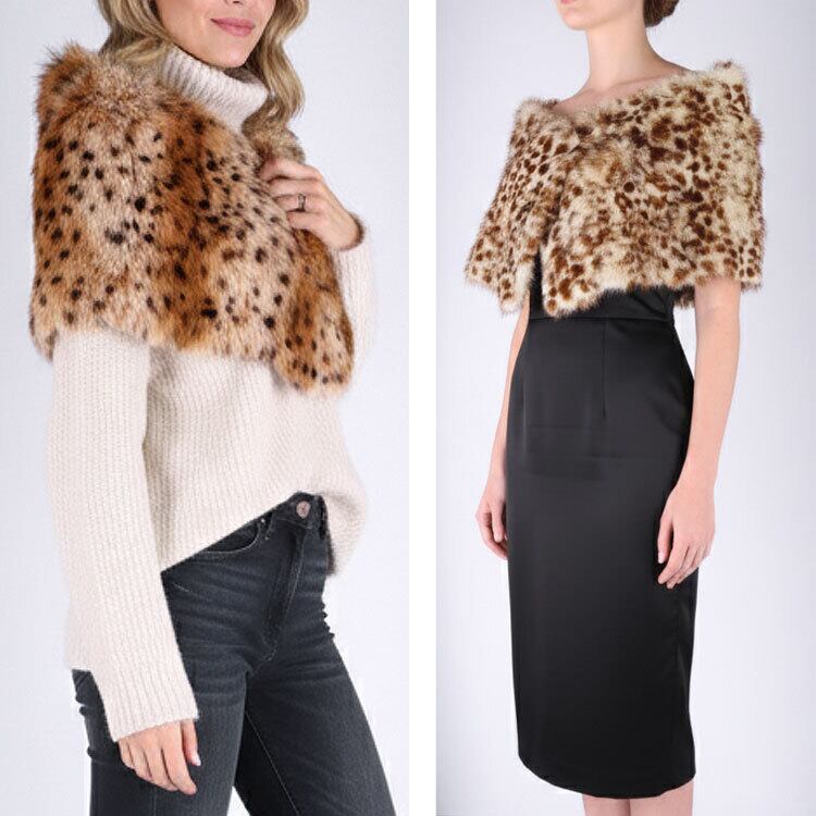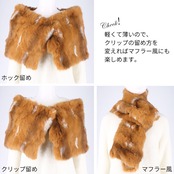 サッと羽織るだけでスタイルが格上げ出来る「お手軽ファーストール」シリーズ。ふわふわで軽く、肌に触れた時のチクチクが少ないラビットファーを使用しています。可愛らしいのバンビ柄・上品な表情を見せるレオパード柄・ワイルドなのキリン柄(ジラフ)の3種をご用意。長方形のシンプルなデザインの為、徴的な柄の見栄えが良いのもこのシリーズならでは。カジュアル使いはもちろん、パーティやお食事会などの上品な席にもピッタリ。肩から羽織るのでメイクが付きにくいのも嬉しいポイント。留め具はホックとクリップの2種類で着脱も簡単。コーデによってつけ方を変えられます。