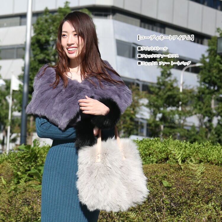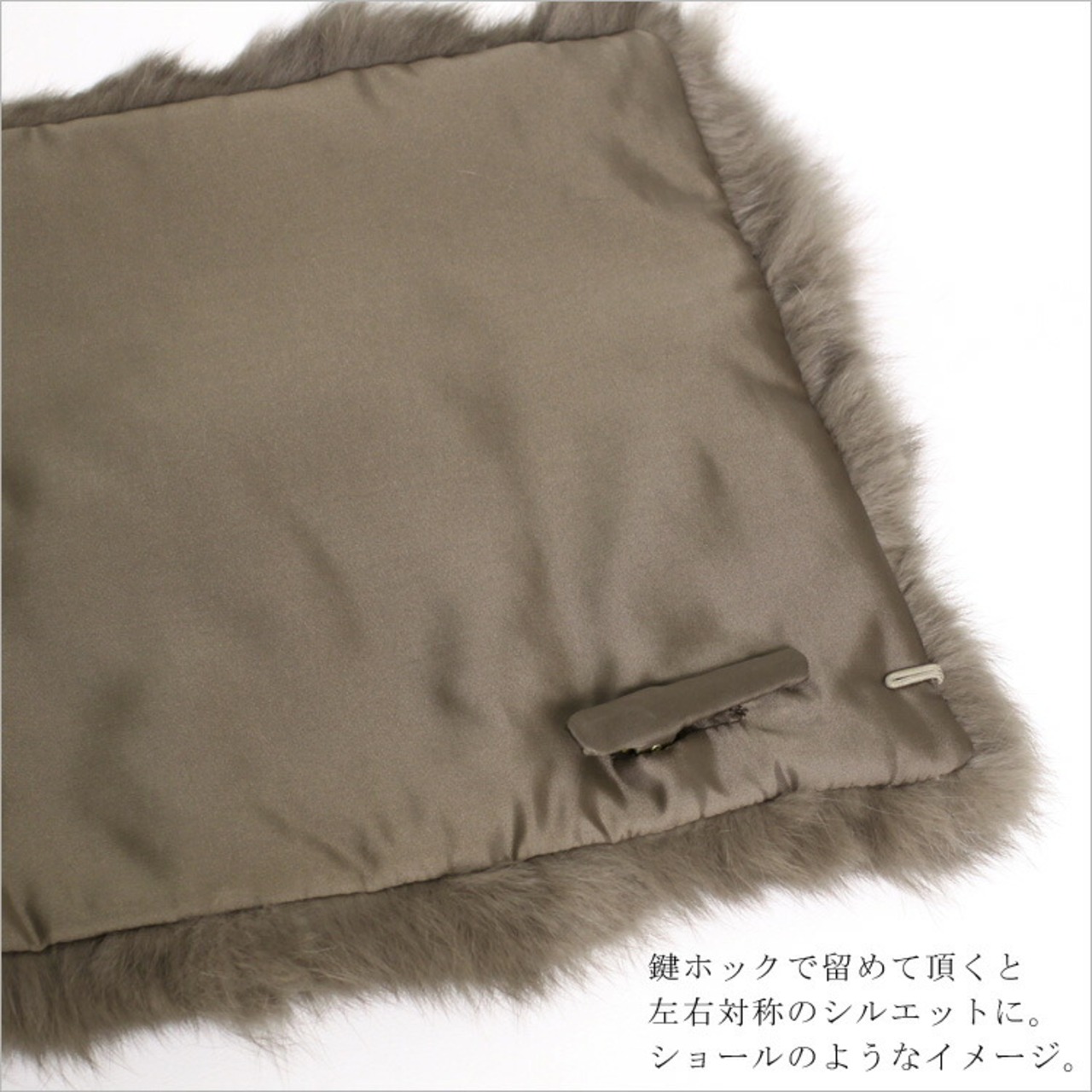 母の日 / ギフト / プレゼント / 累計販売数4,500枚以上の当店人気ラビットファーストール。お客様のご要望から、約12cmほどサイズを伸ばして改良致しました。デザイン性を損なわず、巻きやすく、留め具も付けやすくなりました。薄手で軽いのにとても暖か。肩の出るドレスでも優しいぬくもりで包み込んでくれます。濃密で柔らかな綿毛の肌触りも、そのまま堪能して頂けます。デコルテ(鎖骨付近)と裾が大きくV字になるので、お顔・輪郭をスッキリと、ウエストもほっそり、スタイル良く見せてくれる、当店自慢の「美人ストール」です。
