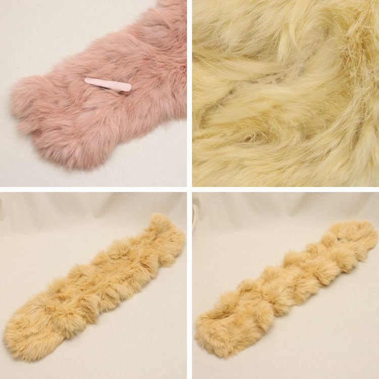 編地にファーを編み込んだ「ニッティング加工」で作られているので大変柔らかく、結んだり、ブローチを留めたり、アレンジの幅が広がります。また、首に直接、触れてもヒンヤリすることなくリアルファーのぬくもりを肌で感じて頂けます。クリップで簡単に止めることができます。そして、ボリュームがあり、シンプルなデザインなので男性にも気軽にお使い頂けるファーアイテムです。