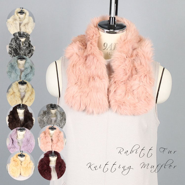 全10色 ラビット ファー 編み込み マフラー クリップ付 レディース ギフト プレゼント