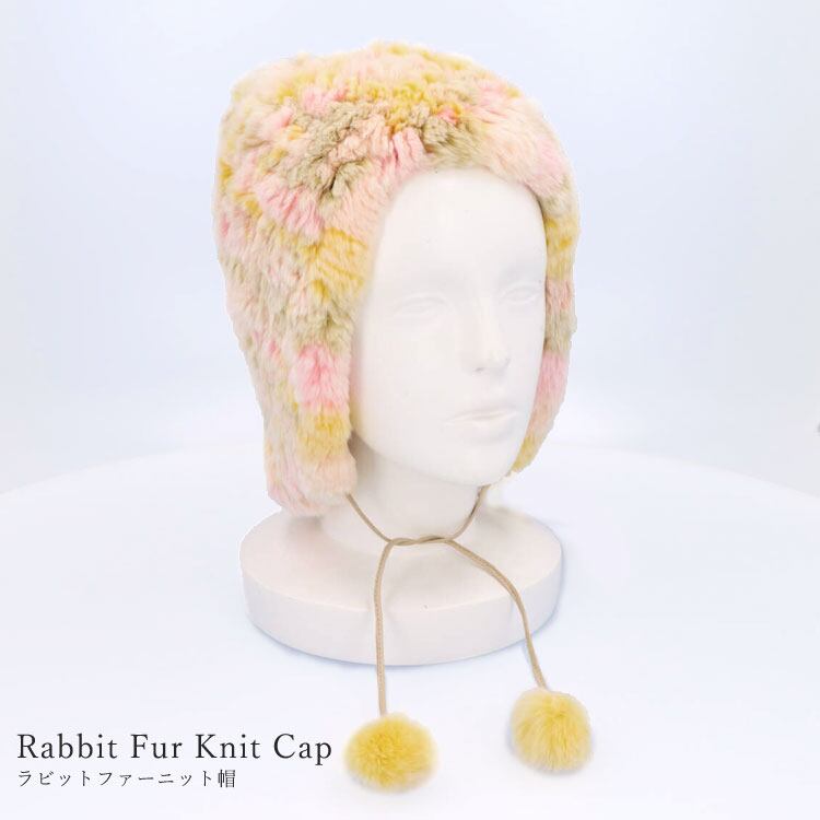 ラビット 編み込み ファー 帽子 ニット帽 ワッチキャップ 耳あて 防寒 ふわふわ キャップ マルチカラー 送料無料 レディース ギフト プレゼント RBCPG1