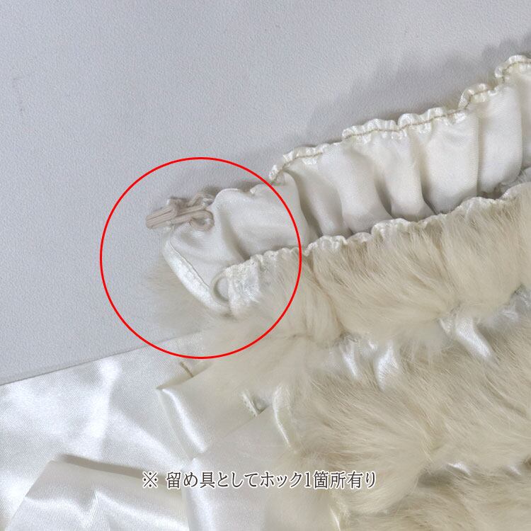 【サイズ(最大部を計測)】長さ約50cm 幅約14cm リボン長さ約60cm 【重さ】約55g 【留め具】ホック×1 【裏地】有り 【素材】ラビット、サテン生地