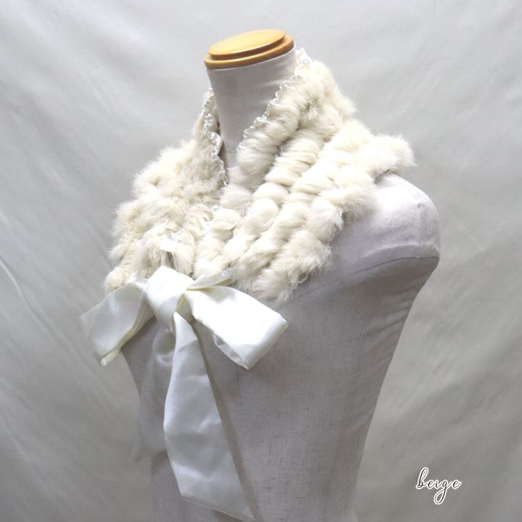 ラビット ファー リボン マフラー シャーリング ティペット レディース ギフト プレゼント