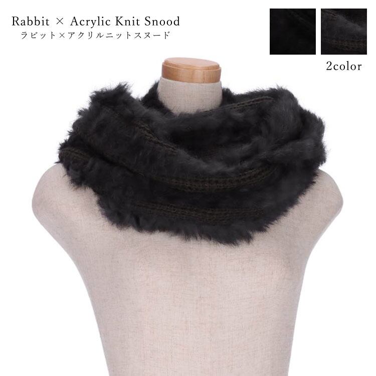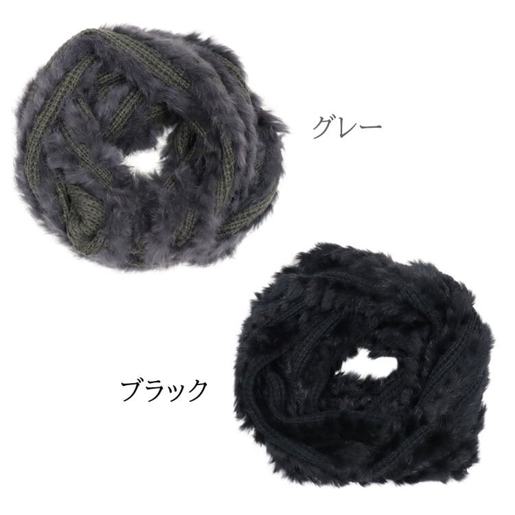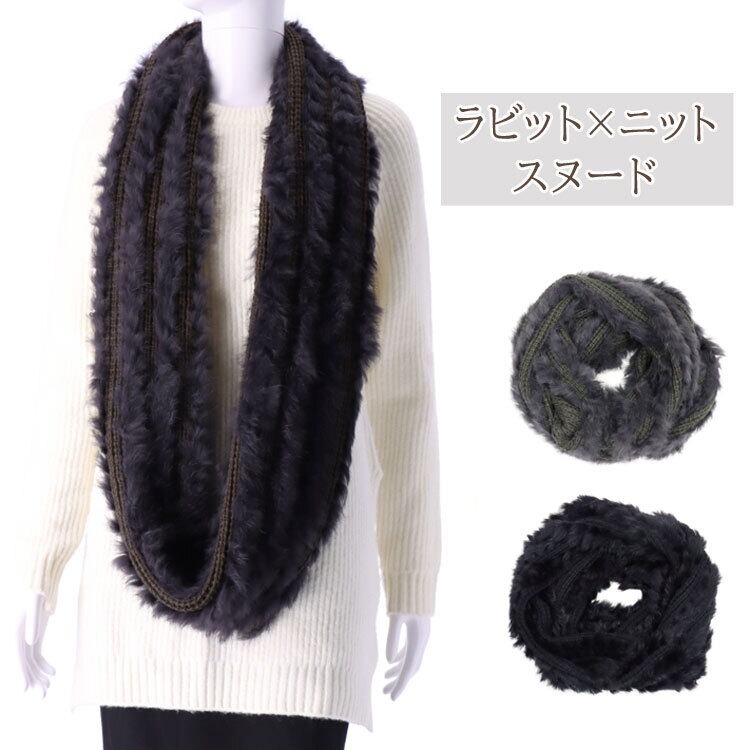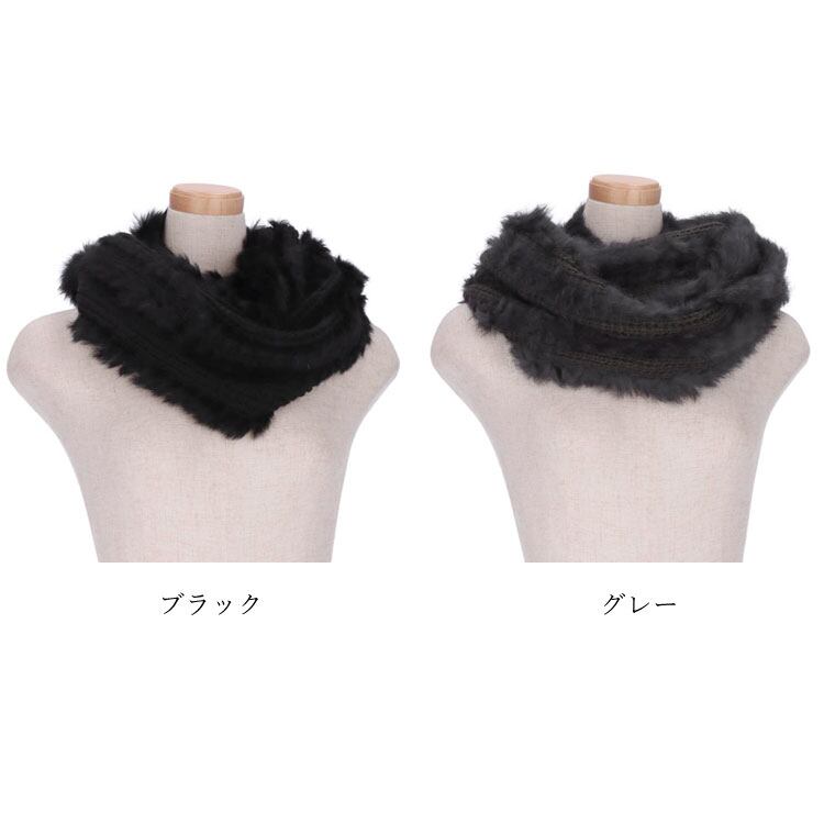 ラビット ファー ニット スヌード アクリルニット ロング マフラー ネックウォーマー ブラック グレー リアルファー 送料無料 レディース メンズ ギフト プレゼント RBF511