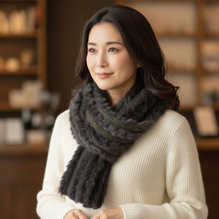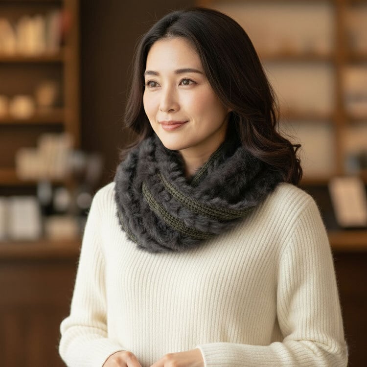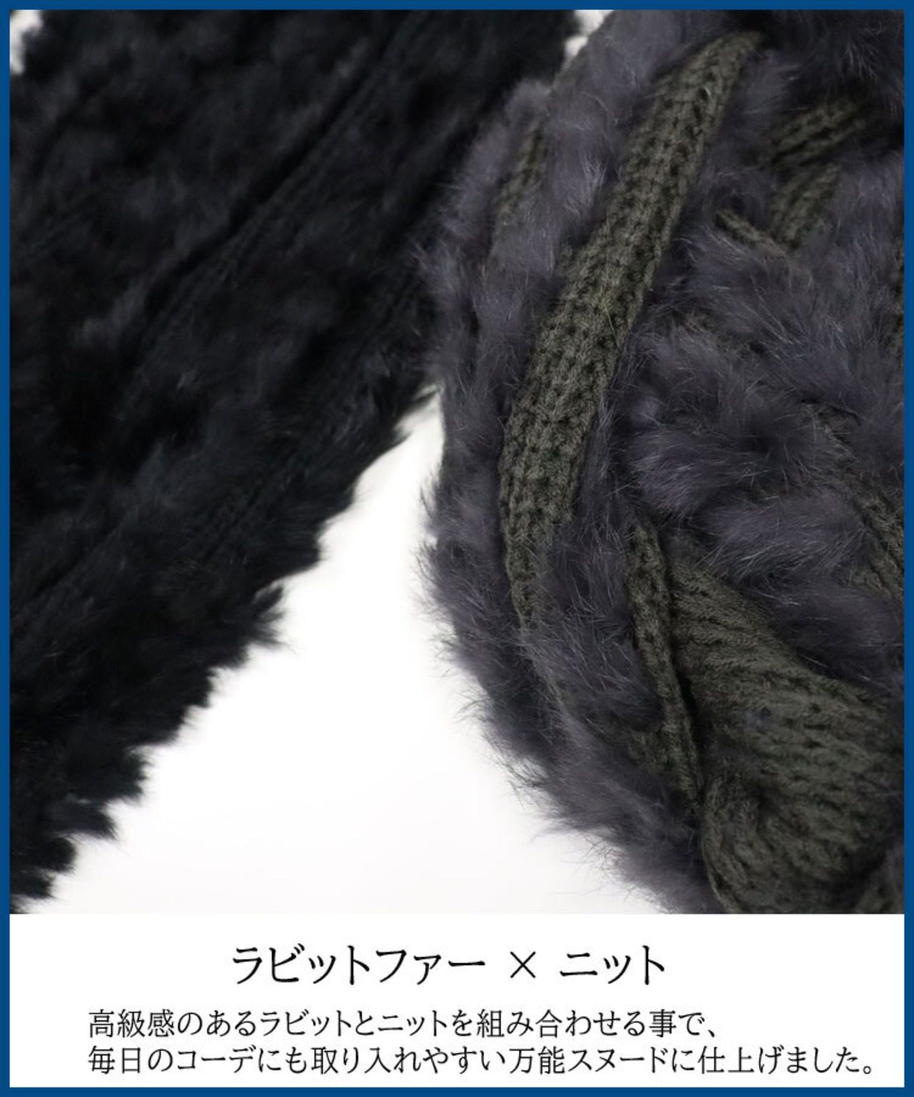 ■巻くだけで華やぐ、大人のためのスヌード■ ふんわり柔らかなラビットファーと、しなやかなニットを組み合わせた上品なスヌード。巻くだけでリッチなボリューム感が生まれ、シンプルなコーディネートもぐっと華やかになります。
