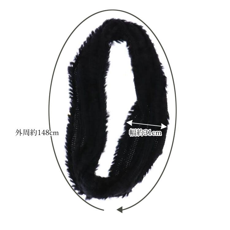 【サイズ(最大部を計測)】外周約148cm 幅約31cm 【重さ】約200g 【裏地】無し 【留め具】無し 【素材】ラビット、アクリルニット 【生産国】中国