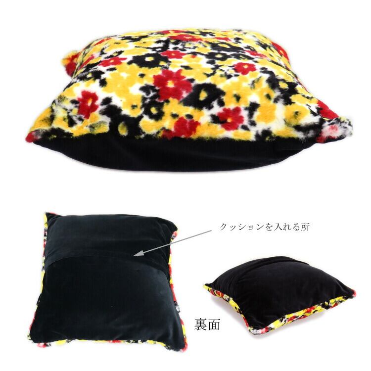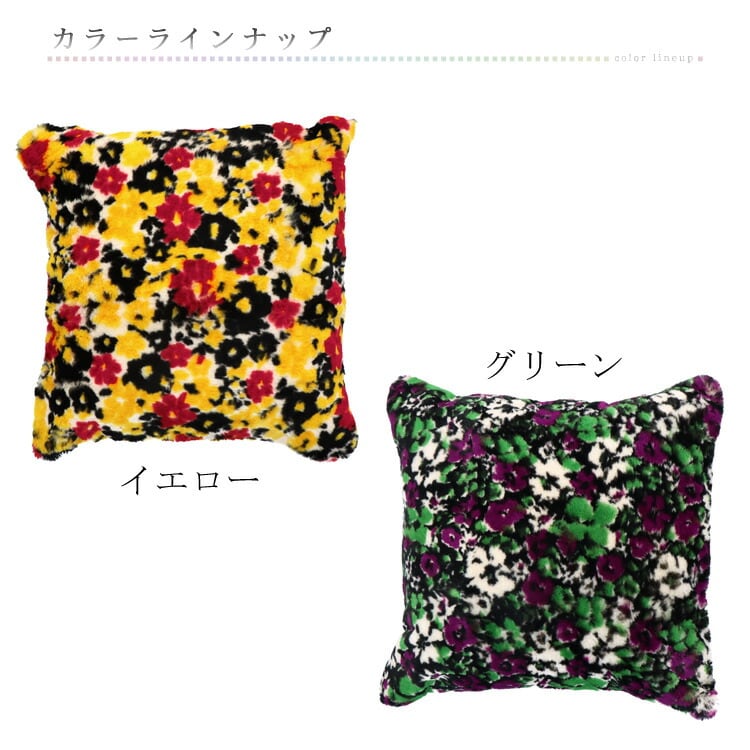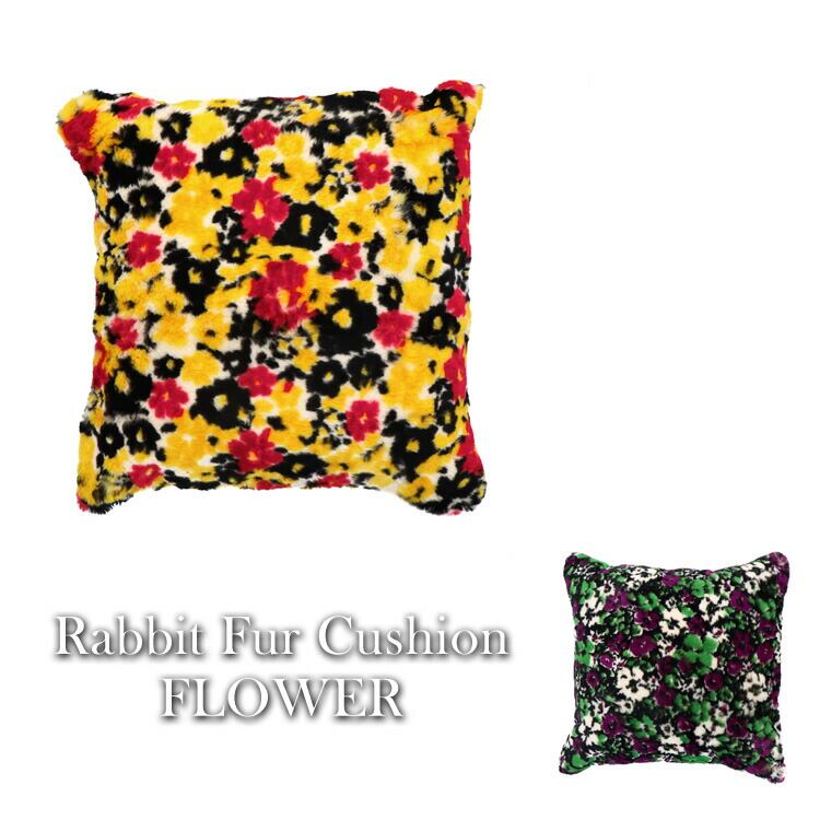 日本製 ラビット ファー ふわふわ クッション 花柄 フラワー 約40cm×40cm 座布団 ソファ クッションカバー ギフト プレゼント インテリア メンズ レディース 送料無料 イエロー グリーン RBFLWR