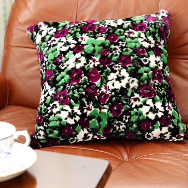 ふわふわで触り心地抜群!ラビットファーのクッション。ふわふわで心地よい肌触り、伝わってくる暖かさはリアルファーならでは。オシャレな花柄なので1つあるだけでインテリアのポイントになります。クッションを入れずに座布団としても使用できます。