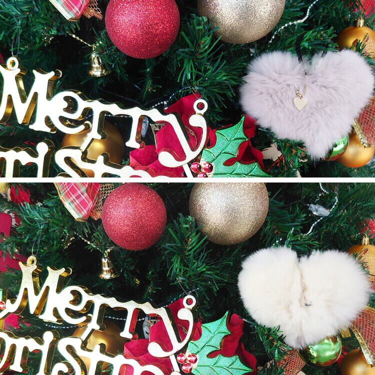 「もこもこふわふわ」ラビットファーのクリスマスオーナメントが登場しました!ハート型のファーボールをクリスマスツリーに飾ると、今年風でとっても可愛いんです。ホワイトとグレーの2色使いなので、どちらの面で飾るかによってツリーの印象が変わります。毛が細く滑らかな手触りなのに丈夫で、毛の密度も濃い上質なラビットファー。キラキラしたクリスマス飾りと一緒に、雪のようにファーオーナメントも飾ってください。アクセサリー・チャームとしてバッグや小物のワンポイントにもオススメです。