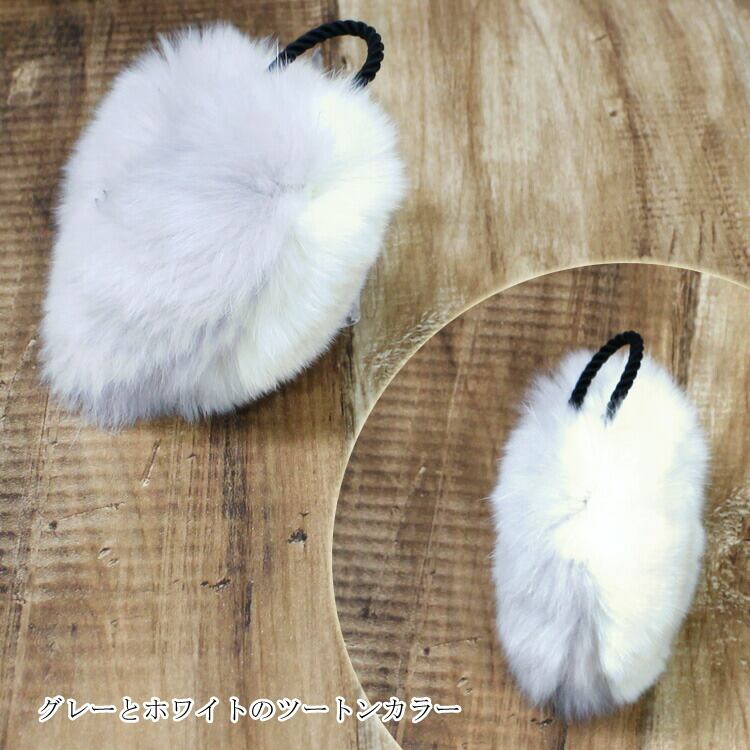 RBHA01AWG1037 ラビット ファー オーナメント ハート オフホワイト&ライトグレー ツートンカラー バイカラーツリー飾り チャーム アクセサリー ギフト プレゼント ぽんぽん ぼんぼり ボール