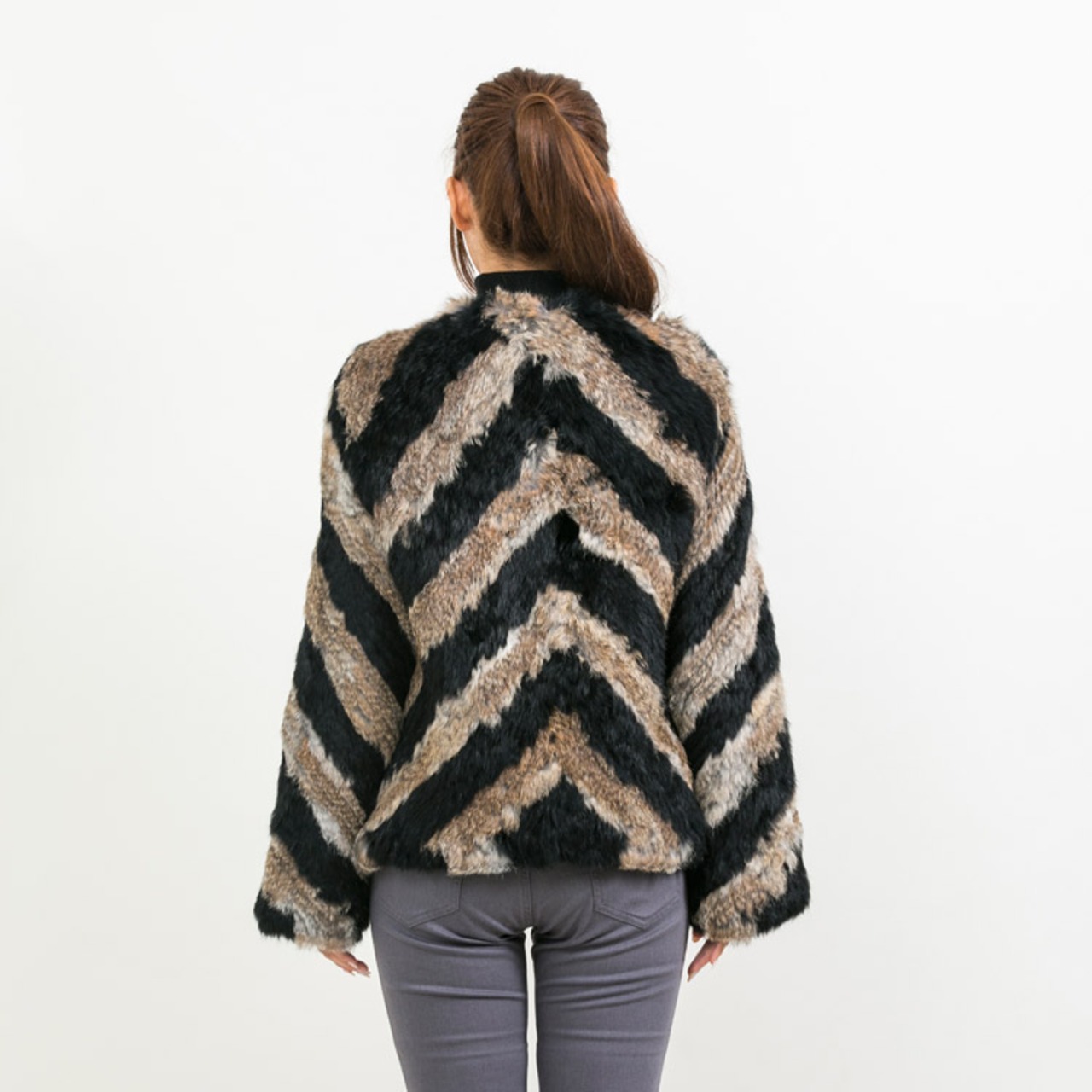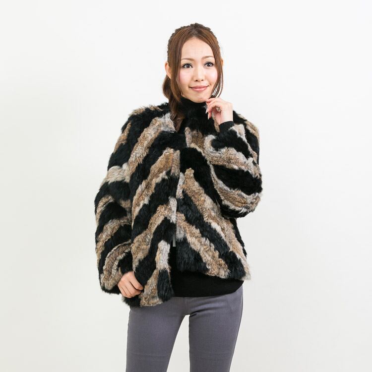 ラビット ファー ニッティング ノーカラー ジャケット ブラック・ナチュラルゴマ レディース 送料無料 ギフト プレゼント