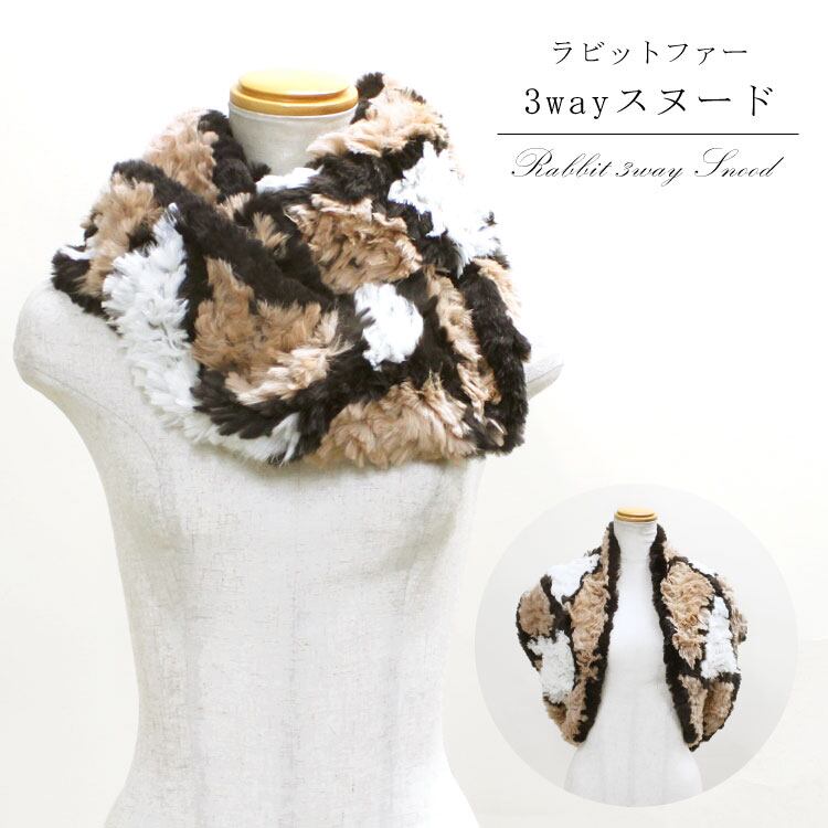 ラビット ファー 3way スヌード マフラー ボレロ ブラウン キャメル 送料無料 レディース ギフト プレゼント 秋冬