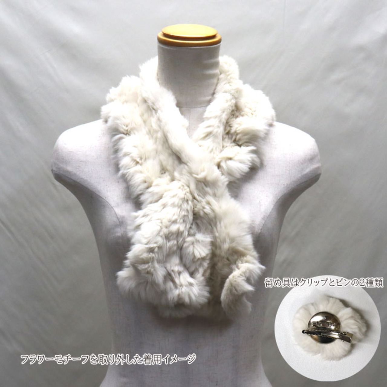 訳あり ラビット ファー 編み込み フリル フラワーモチーフ マフラー レディース ギフト プレゼント RBK261