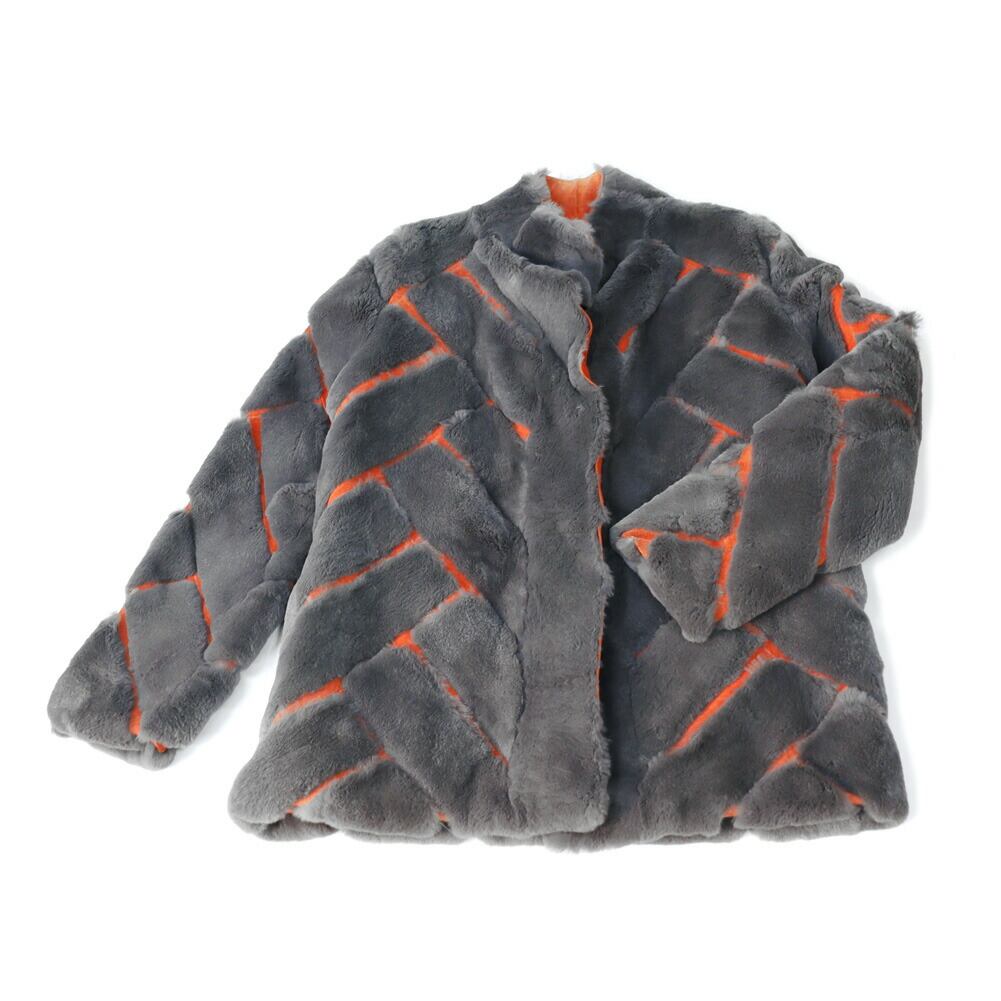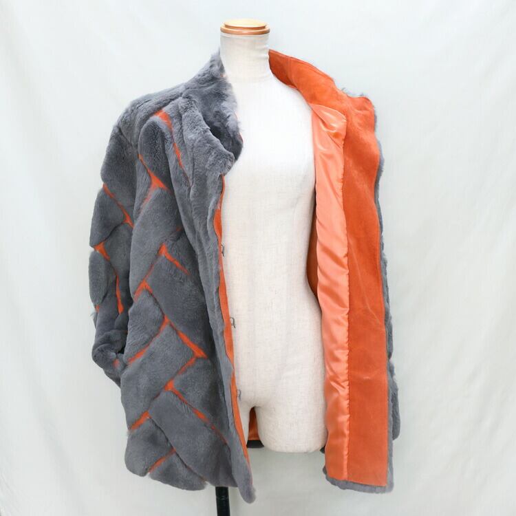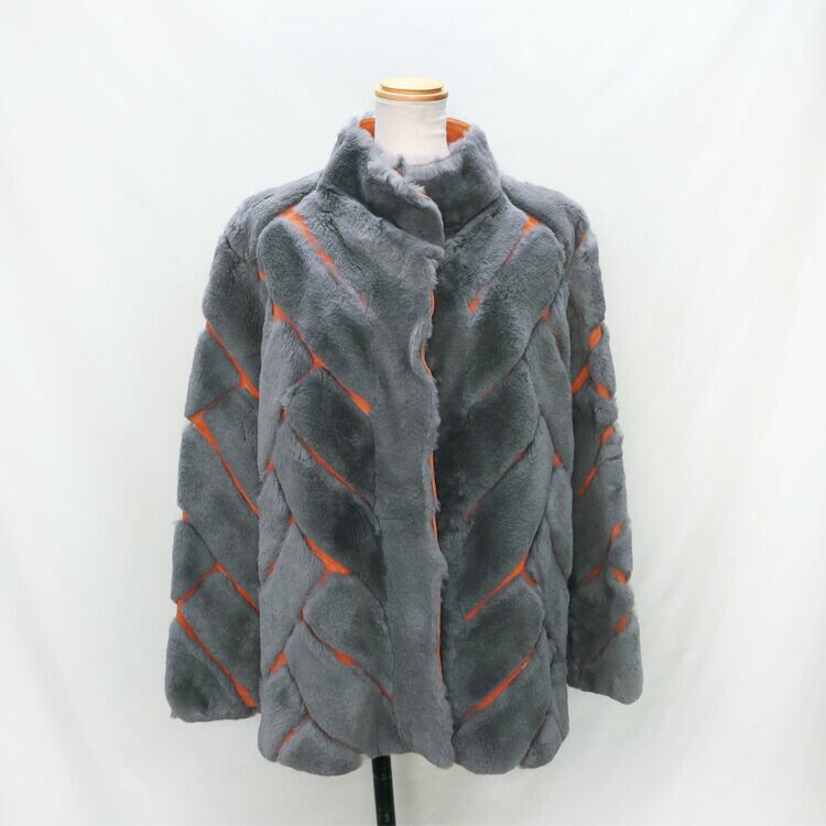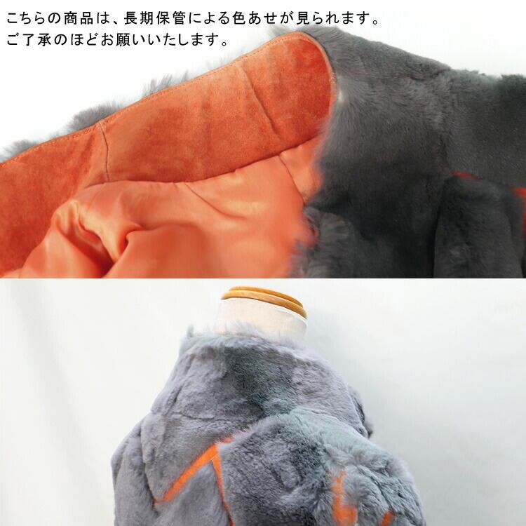 RBLW17A 訳あり ラビット ファー ジャケット グレー オレンジライン フリーサイズ 送料無料 レディース ギフト プレゼント