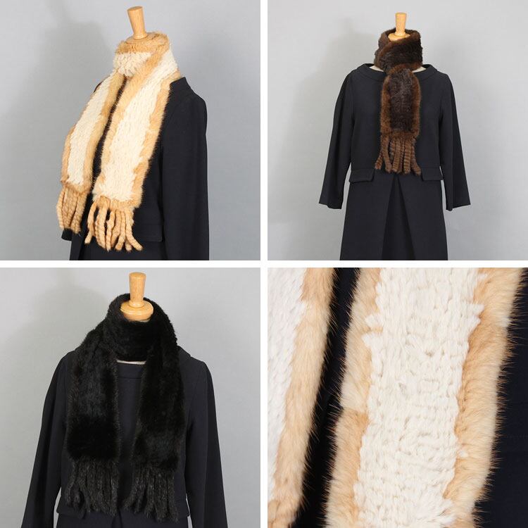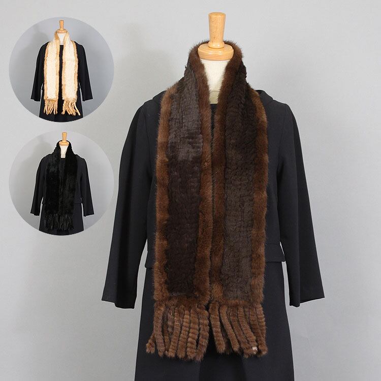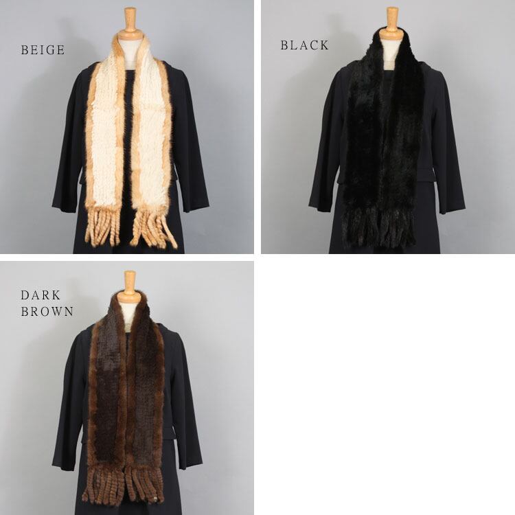 ラビット ・ ミンク ファー マフラー フリンジ付 レディース ギフト プレゼント