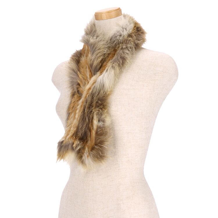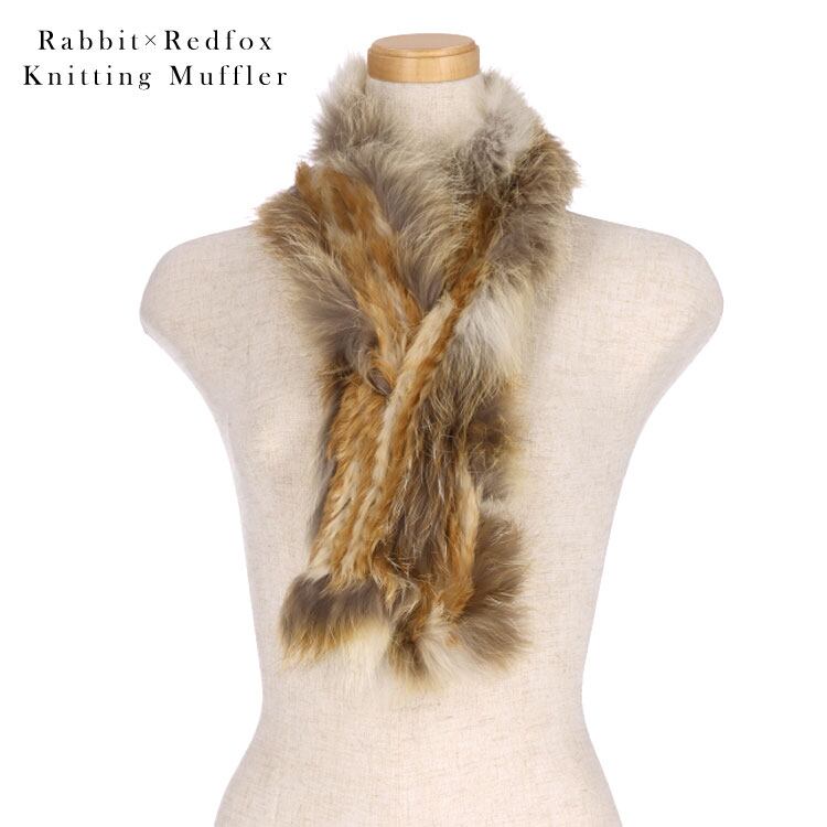 RBR200ANA1037 ラビット レッドフォックス ファー マフラー 編み込み ニッティング ナチュラルカラー レディース ギフト プレゼント