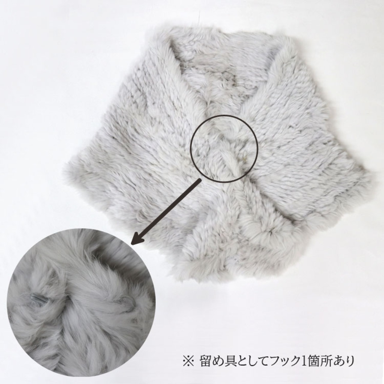 【サイズ(最大部を計測)】縦幅約30cm 横幅約109cm 【留め具】フック1箇所【裏地】無し 【素材】ラビット