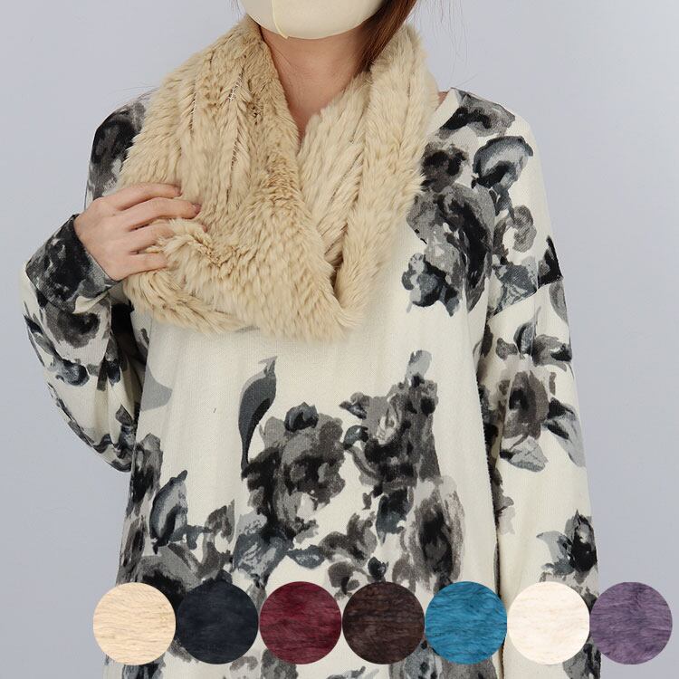 ラビット 編み込み ファー スヌード 筒状 レディース ギフト プレゼント RBST81