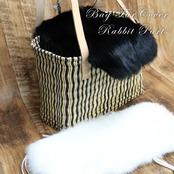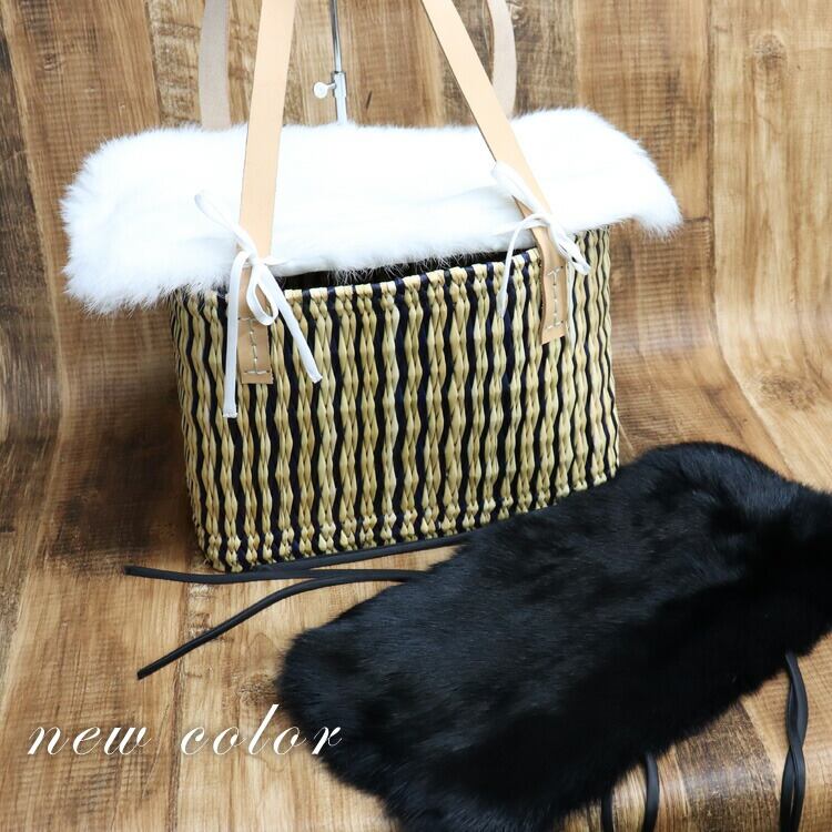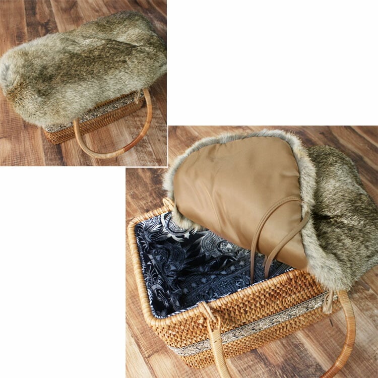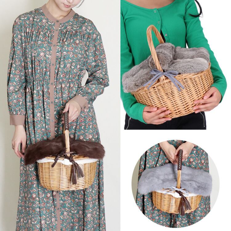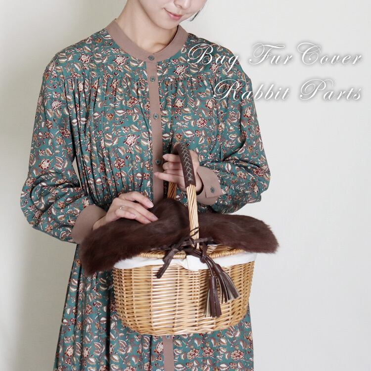 ラグジュアリーなラビットファーのバッグ用カバー(フタ)です。お気に入りのカゴバッグや、飽きてしまったバッグなどに付けてみてはいかがでしょうか。鞄の持ち手に結ぶだけなので、取り付けも簡単。持ち手が1本のバスケットや、持ち手2本のカゴバッグなどにおすすめ。バッグの中身が見えないよう蓋代わりに使ったり、バッグのアレンジにも。