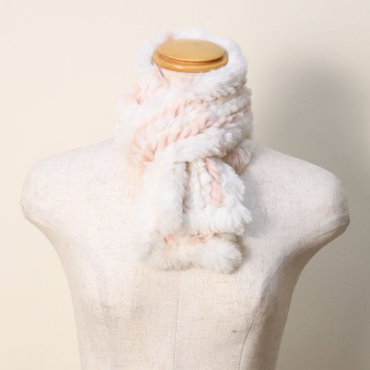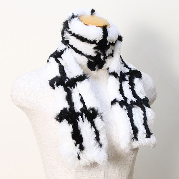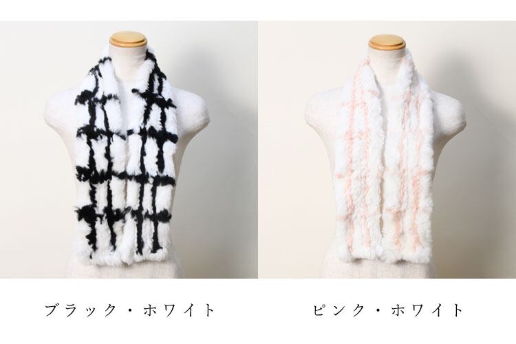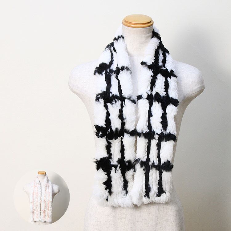 RBX091A ラビット 編み込み ファー マフラー チェック柄 レディース ギフト プレゼント