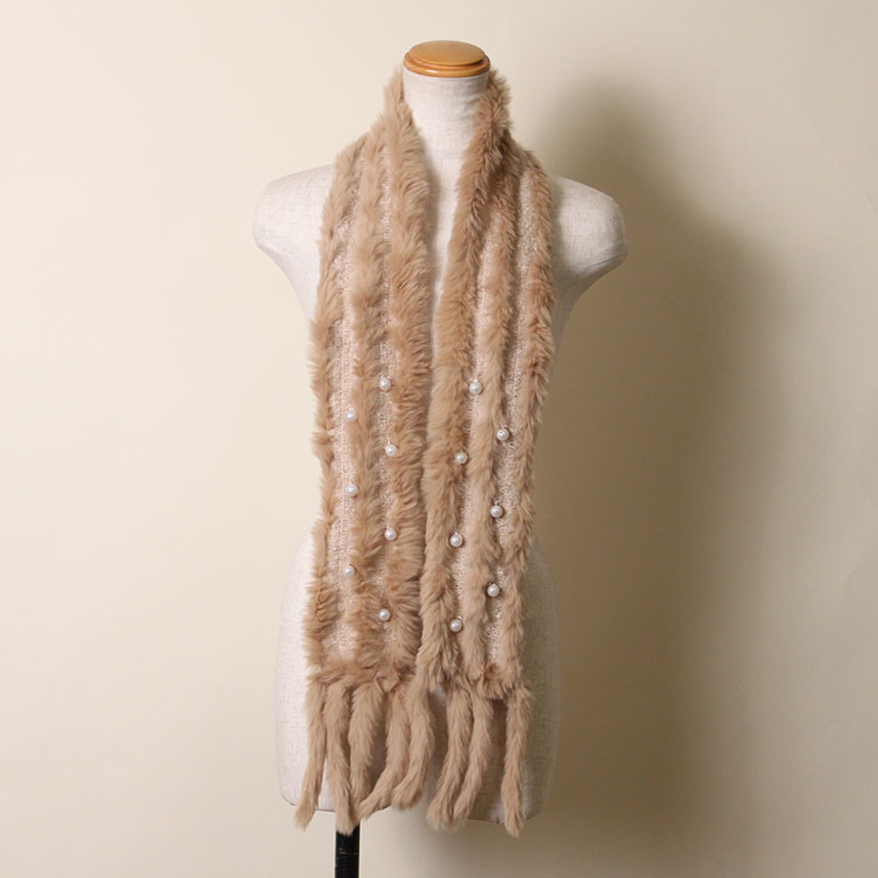 ラビット ・ ニット ファー マフラー ベージュ レディース ギフト プレゼント