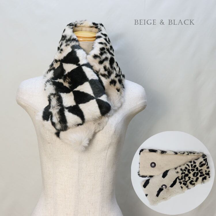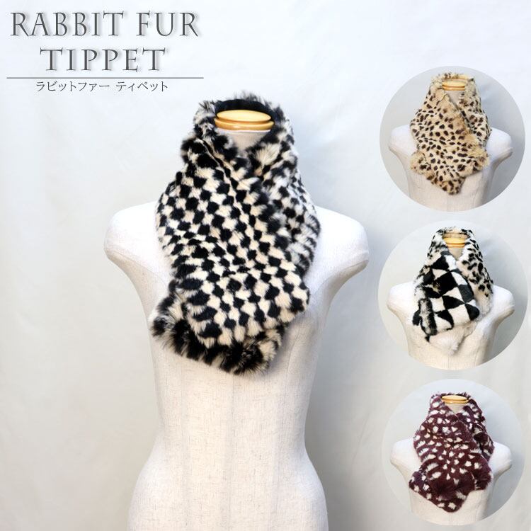 マフラー レディース ファー ティペット ラビット リアルファー 柄入り ギフト プレゼント