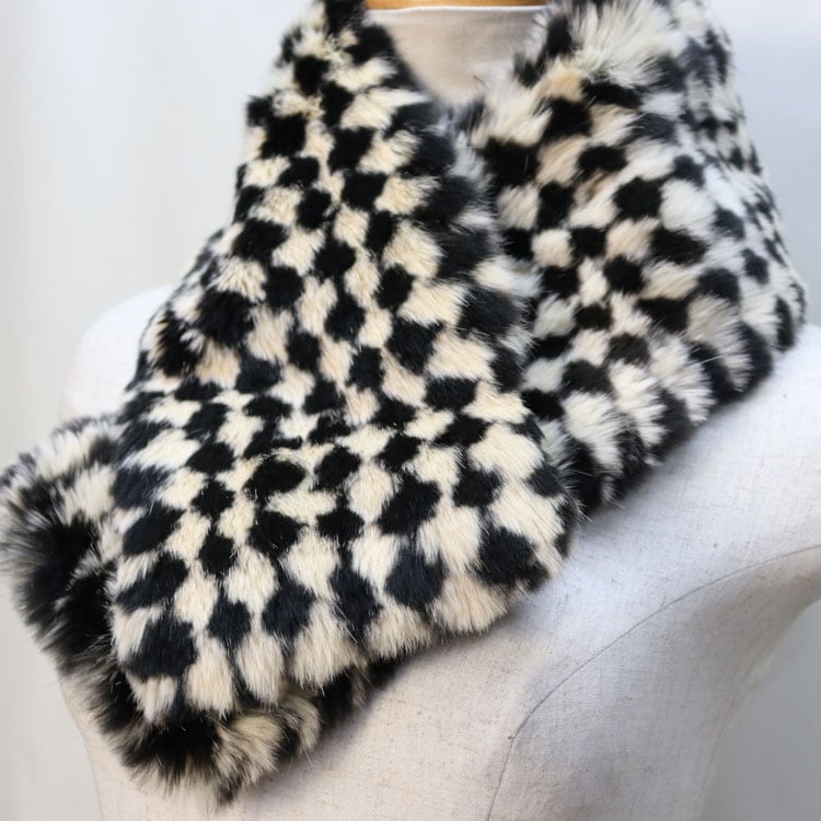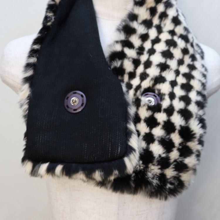【サイズ(最大部を計測)】全長約82cm 横幅約15cm 厚み約1.5cm 【重さ】約115g 【留め具】ホック×1 【裏地】有り 【素材】ラビット、アクリルニット