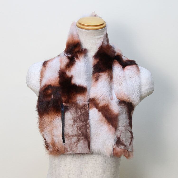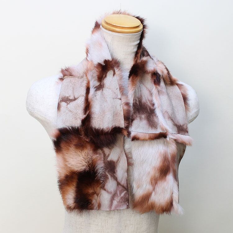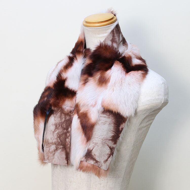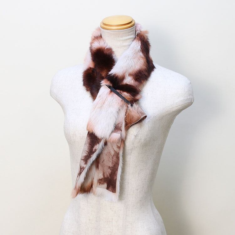 ラビット Wフェイス ファー マフラー ムラ染め レッド レディース ギフト プレゼント RBZPT1