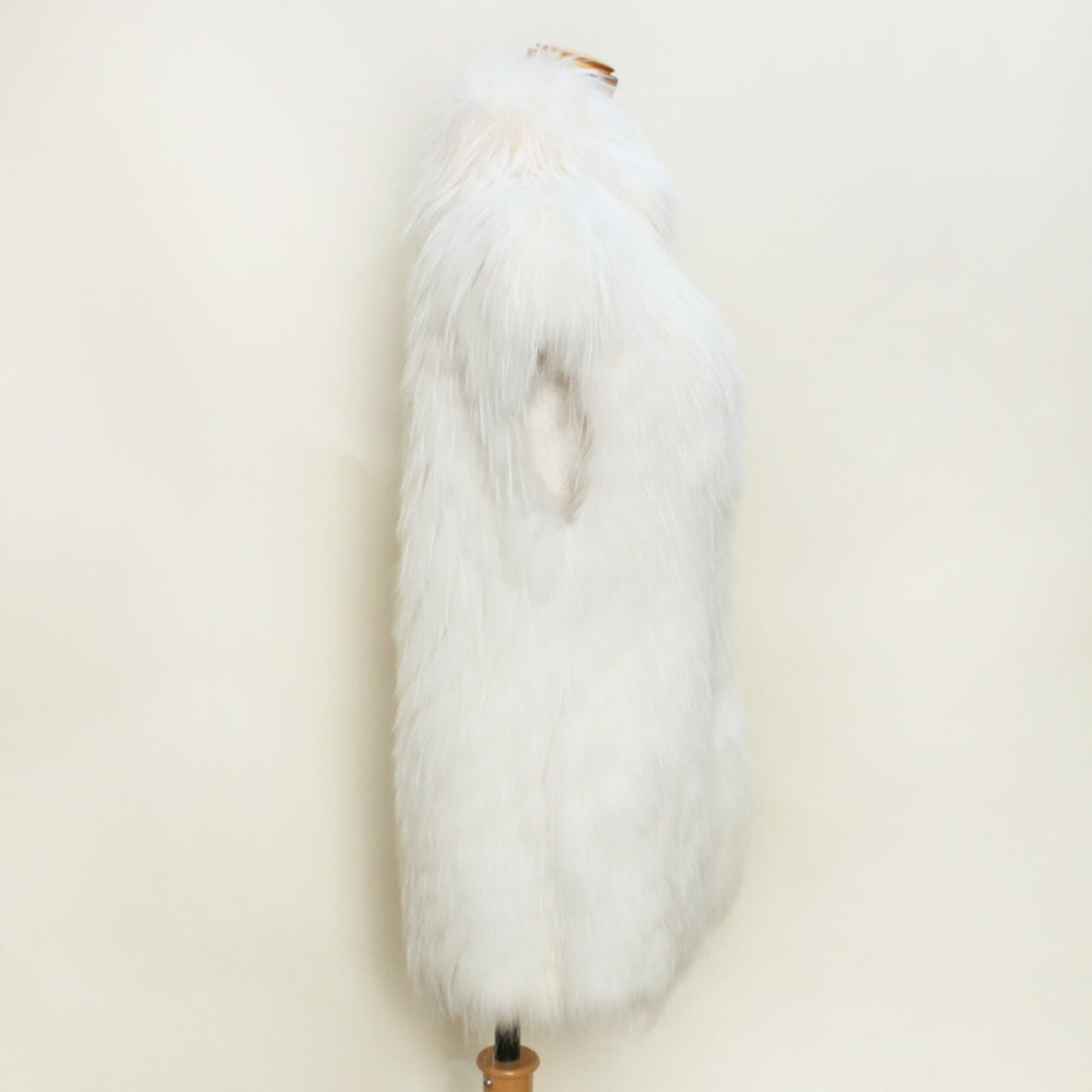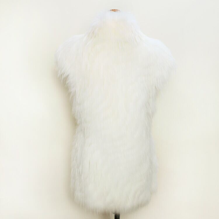 ラクーン(タヌキ)は毛足が長く、ボリュームがあり、ワイルドな毛質なのでゴージャスに。お尻まですっぽり隠れるので、脚長効果も期待できるラクーンファーベストです。