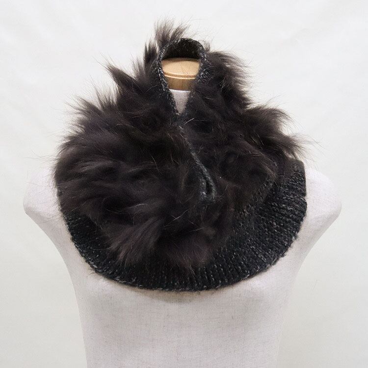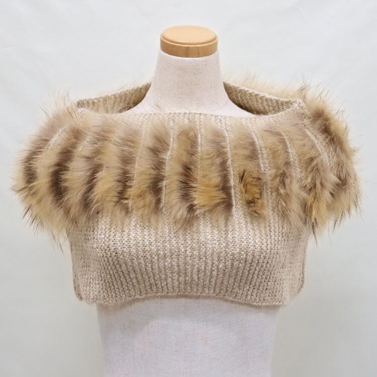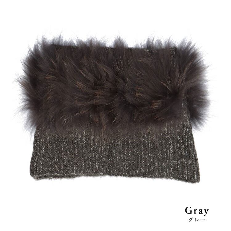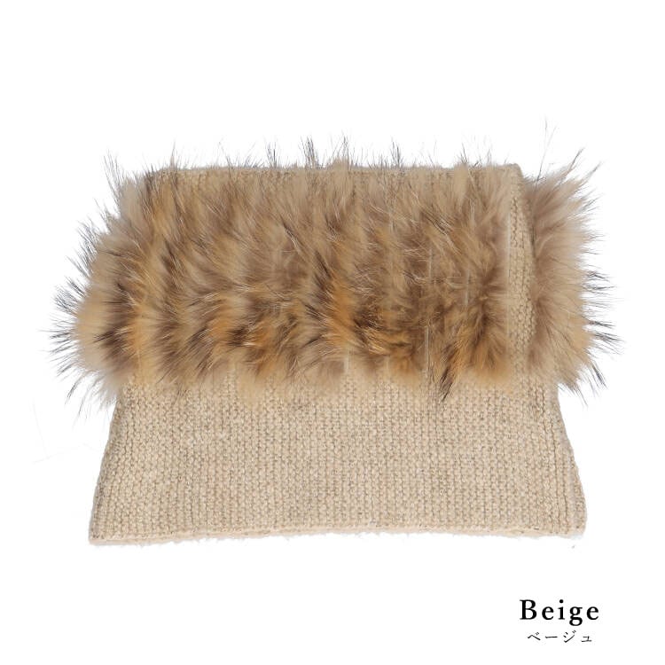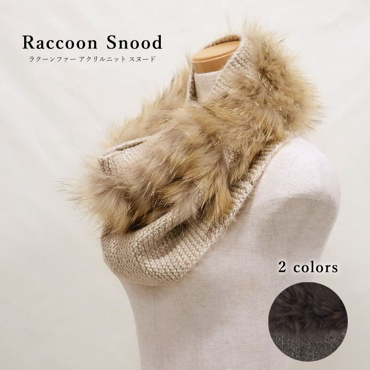 ラクーン ファー ニット スヌード マフラー グレー ベージュ レディース ギフト プレゼント