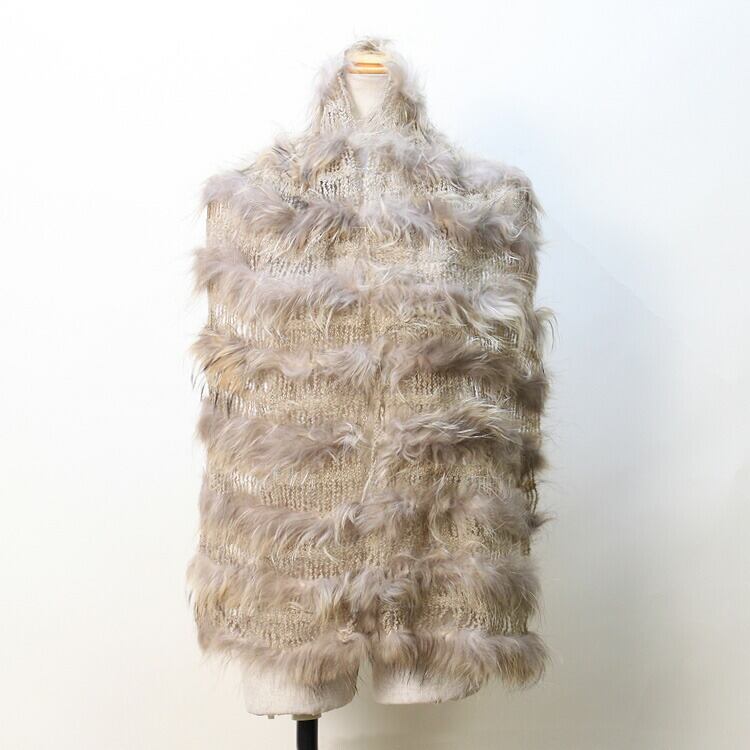RCA111ANA1037 ラクーン ファー ・ アクリルニット マフラー ナチュラルゴールド 送料無料 レディース ギフト プレゼント