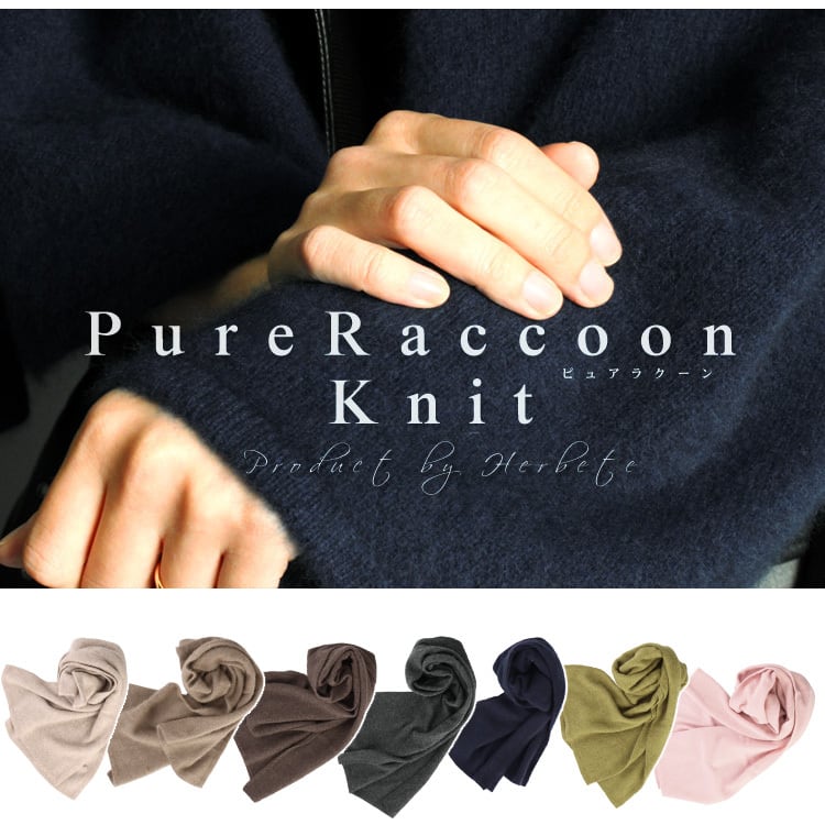毛足の長いチャイニーズラクーンのファーを100%使用したニットストールです。天然繊維ならではの奥深いラグジュアリーな色合いと暖かさ。