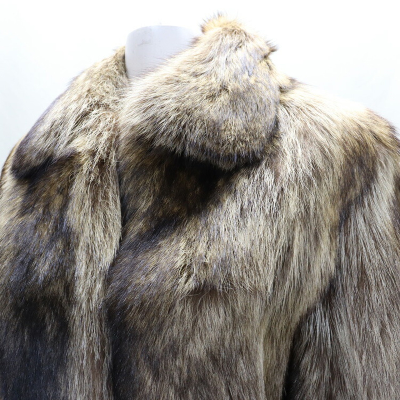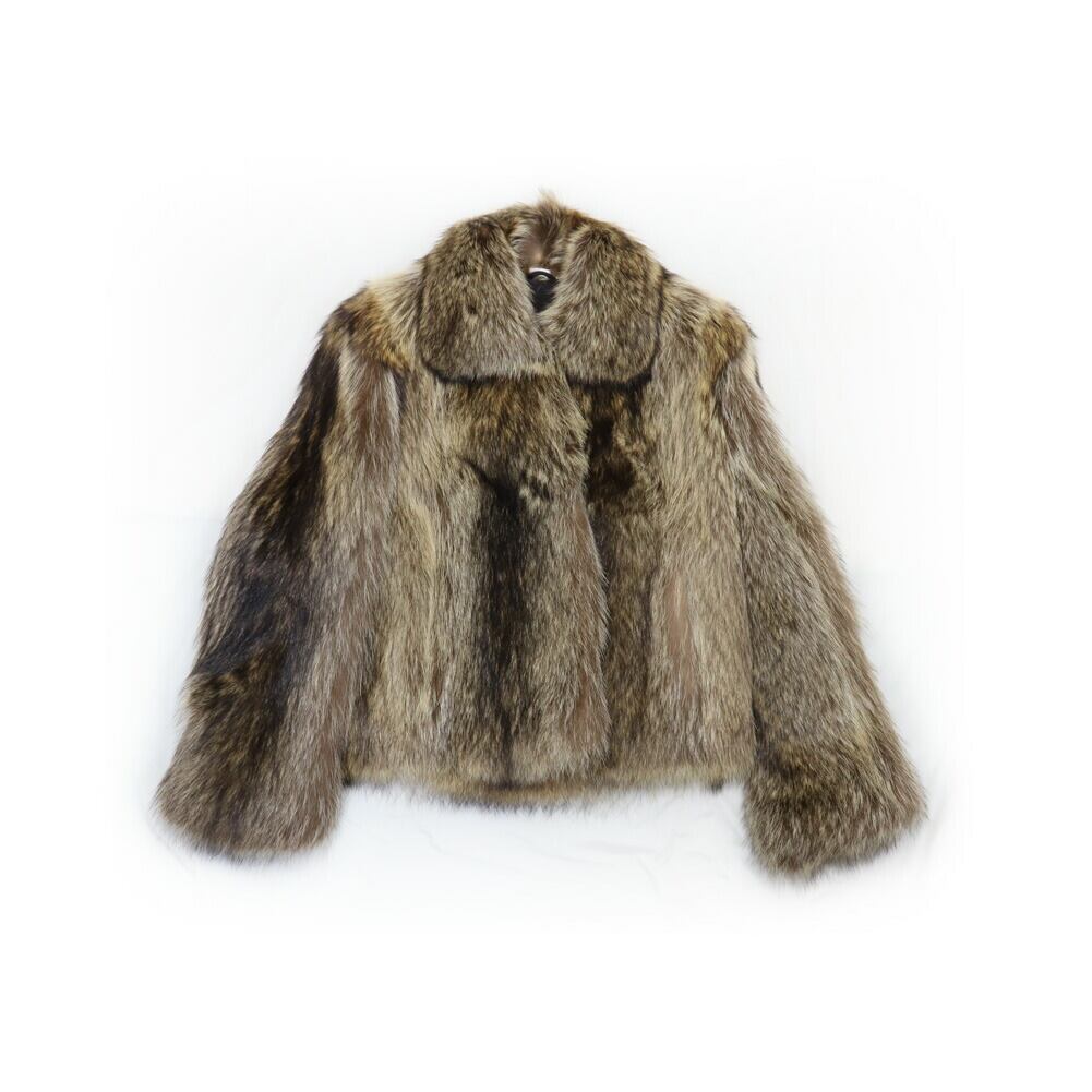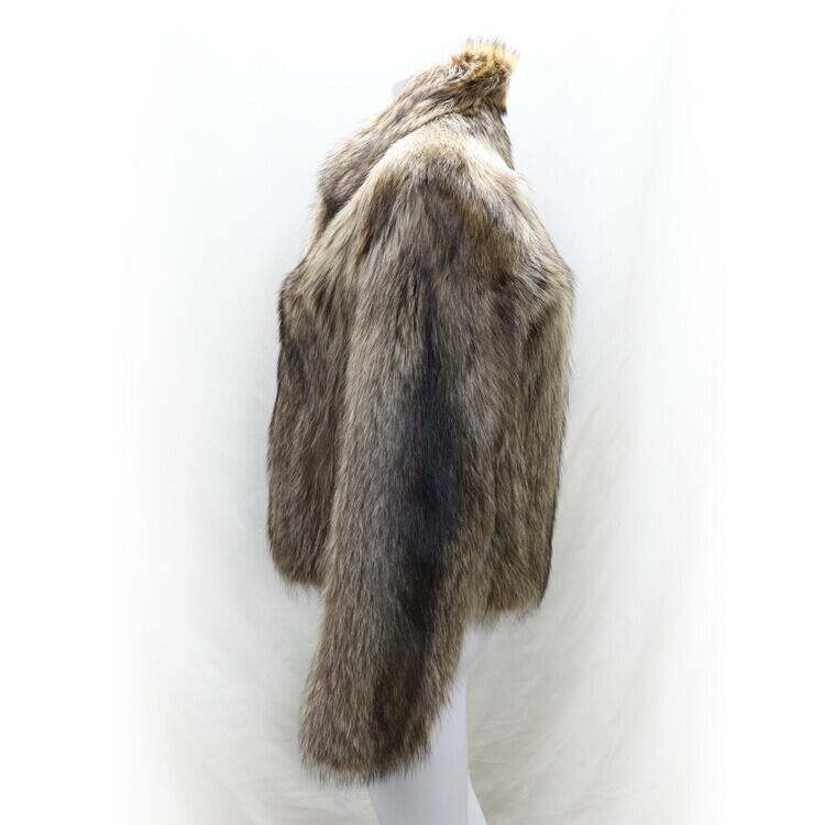 【サイズ(最大部を計測)】着丈約60cm 身幅約106cm 肩幅約50cm 袖丈約62cm 【重さ】約1570g 【外側ポケット】2つ 【内側ポケット】無し 【留め具】ホック×3 【裏地】有り 【素材】ラクーン(タヌキ)