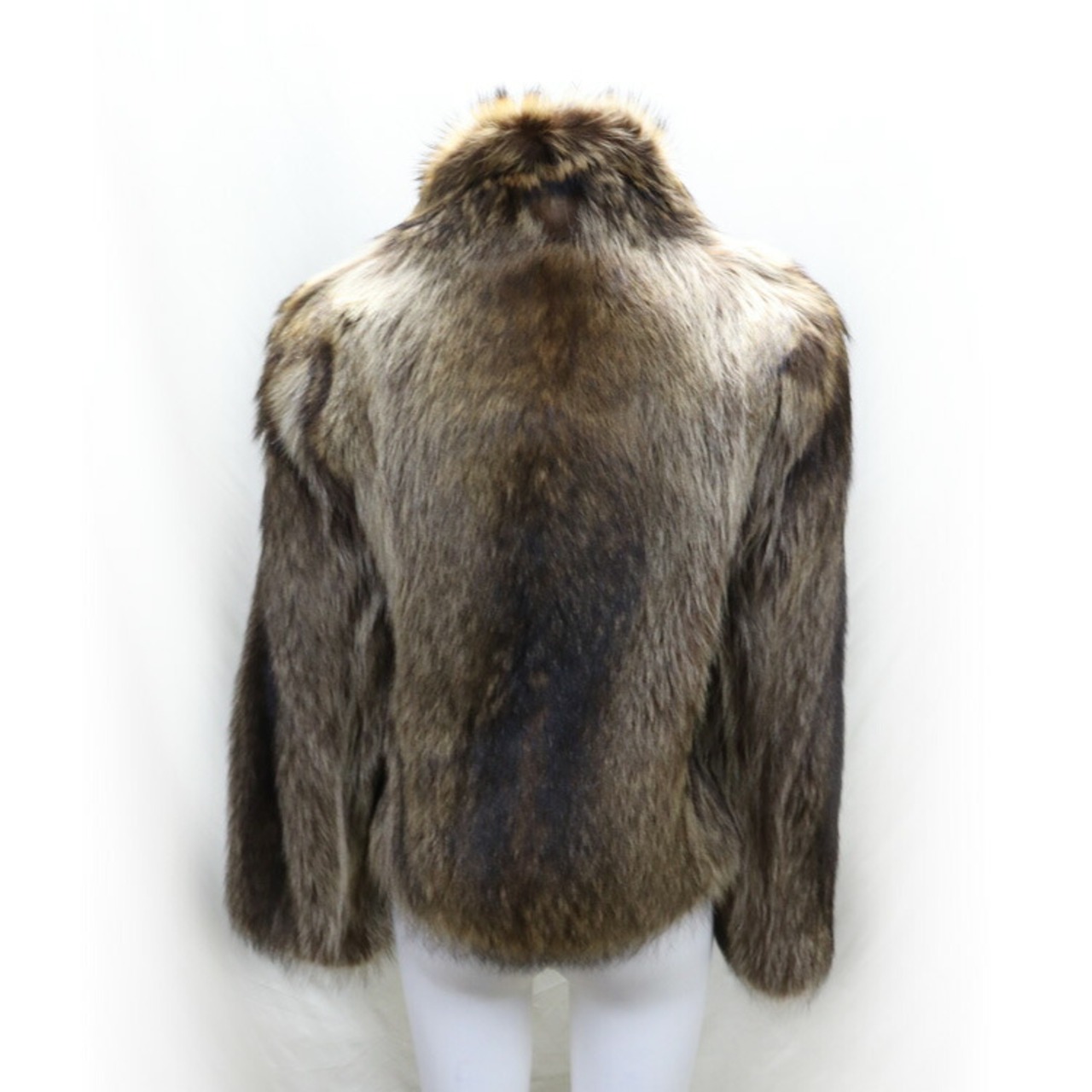 ラクーンを全面にあしらった存在感抜群のファージャケット。ボリュームのある毛足で、暖かみと高級感が感じられます。見た目も着心地も暖かく、寒い時期にはピッタリのアイテムです。