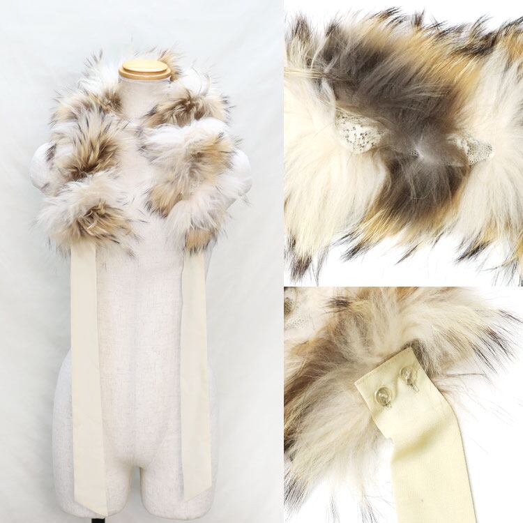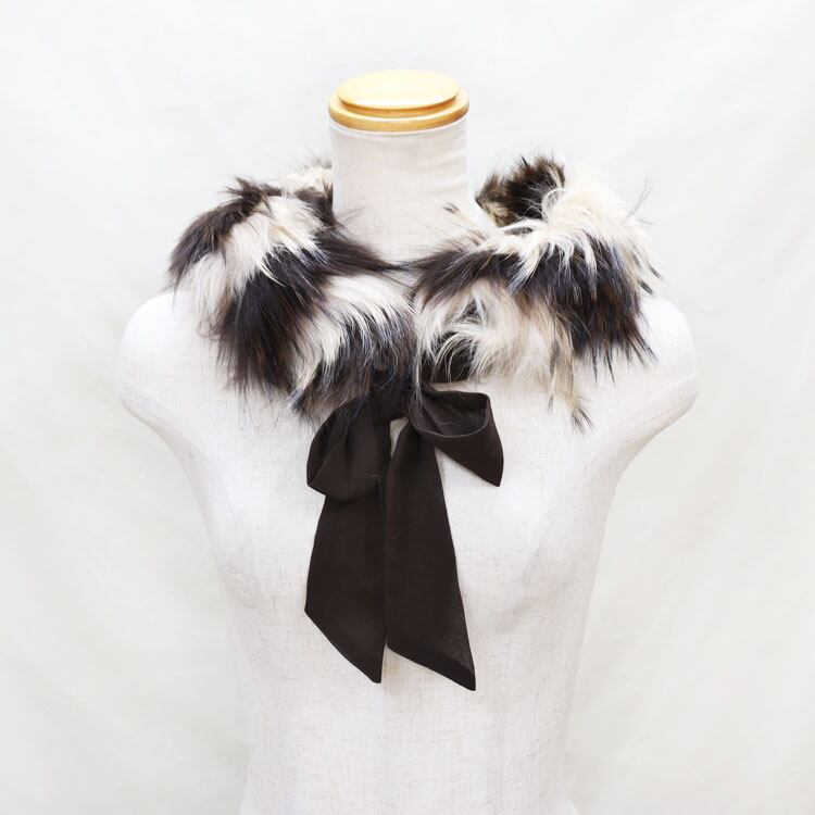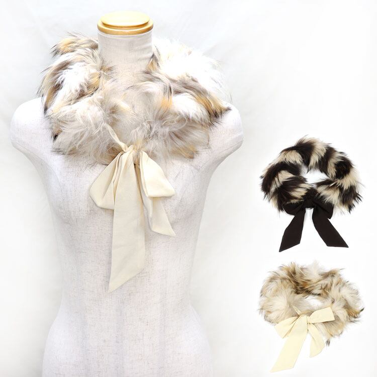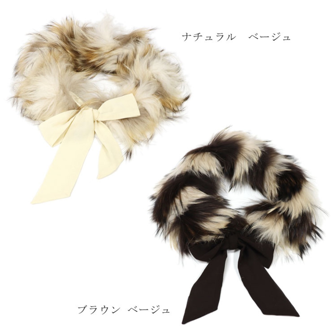 ラクーン ファー リボン付 マフラー ティペット タヌキ レディース ギフト プレゼント ベージュ ブラウン 送料無料