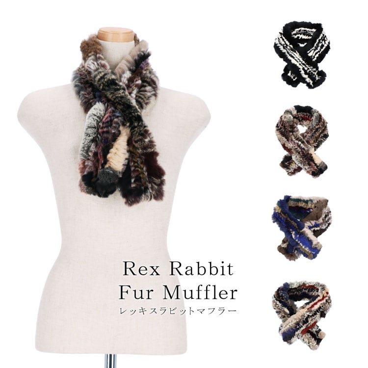 レッキス ラビット ファー マフラー ふわふわ マルチカラー ブラック ホワイト レディース ギフト プレゼント RF7071
