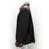【サイズ(最大部を計測)】着丈約69cm 身幅約112cm 肩幅約42cm 袖丈約63cm 【重さ】約950g 【外側ポケット】2つ 【内側ポケット】2つ 【留め具】ボタン×3 【裏地】無し(リバーシブル) 【素材】スキレル(リス)、シルク