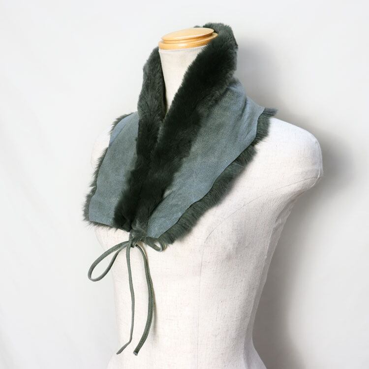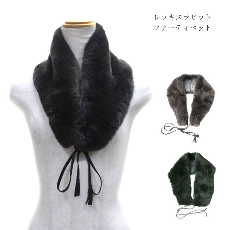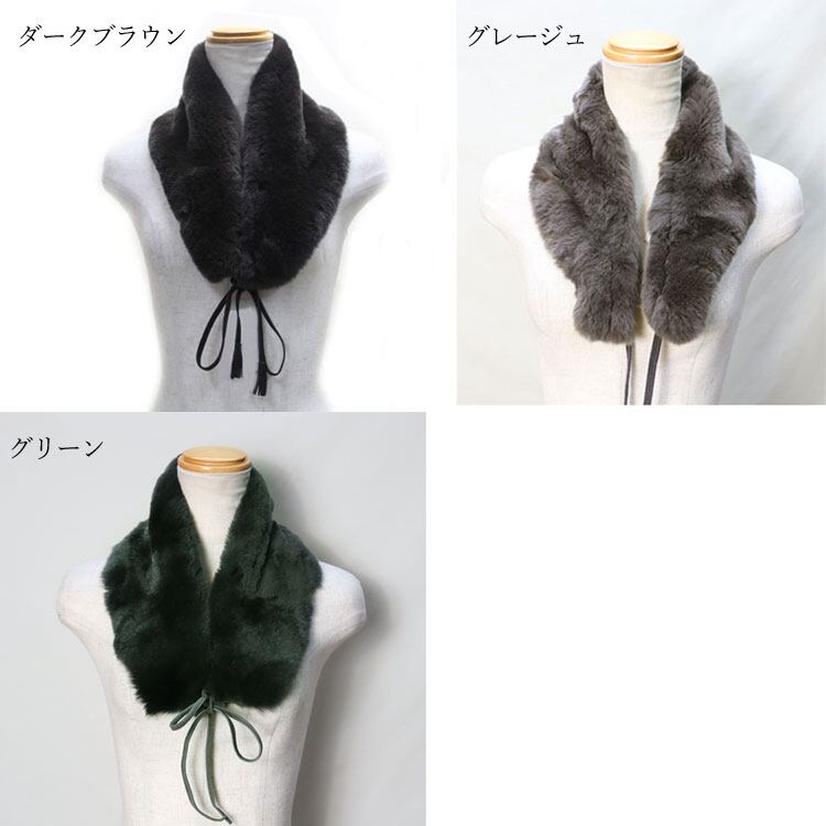 レッキスラビット ファー ティペット マフラー Wフェイス レザー ブラウン グリーン グレージュ 秋 冬 レディース ギフト プレゼント