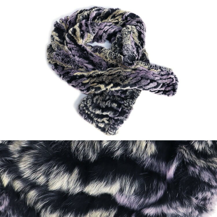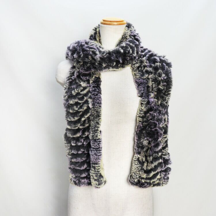 レッキス ラビット ファー マフラー ロング マルチカラー 編み込み パープル ベージュ 送料無料 レディース ギフト プレゼント