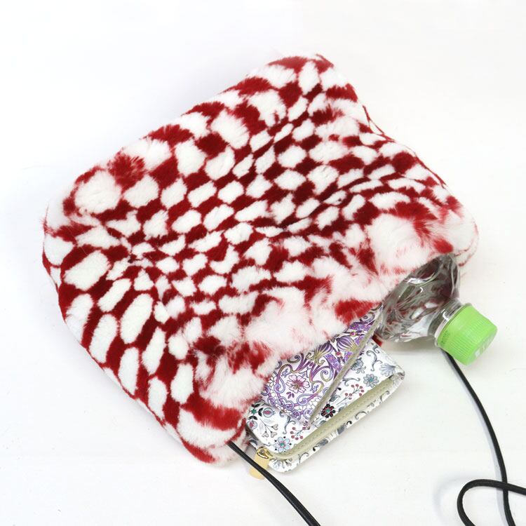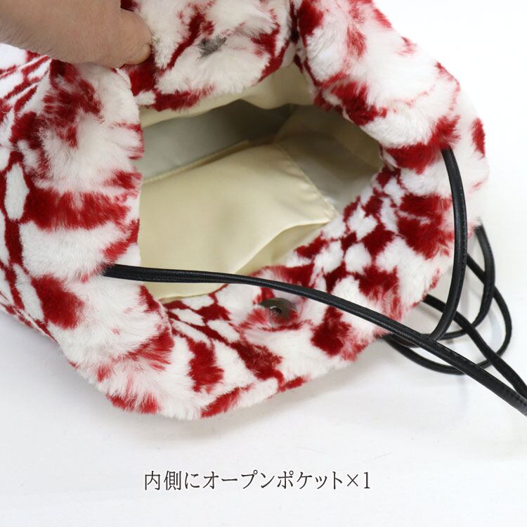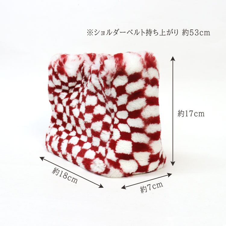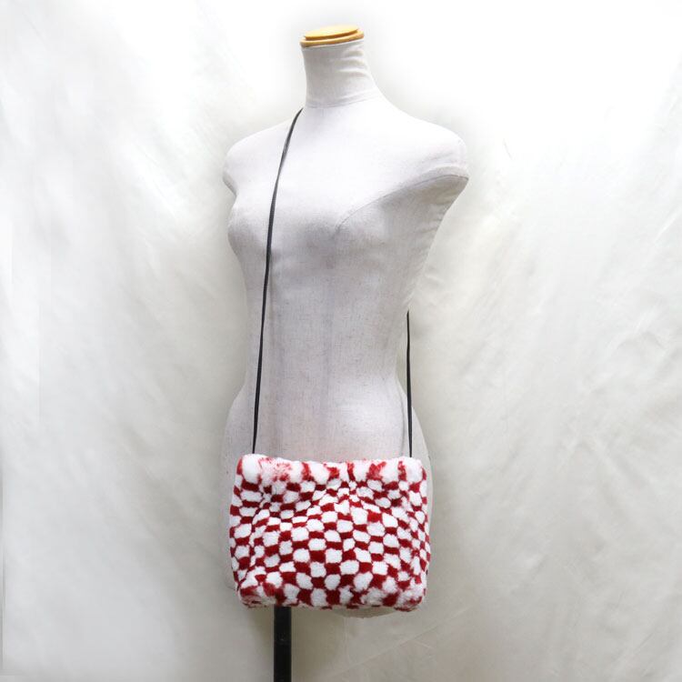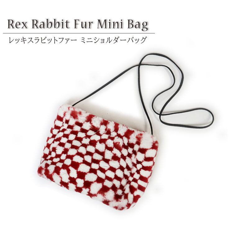 レッキスラビット ファーバッグ ショルダーバッグ ポシェット レッド ホワイト 市松模様 レディース ギフト プレゼント