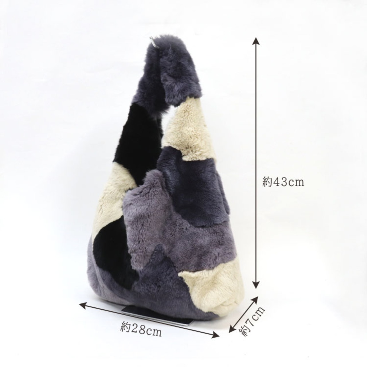 【サイズ(※毛先を含む最大部を計測)】縦幅約43cm 横幅約28cm マチ幅約7cm 【重さ】約230g 【内側収納】オープンポケット×1 【外側収納】無し 【留め具】無し 【裏地】有り 【素材】レッキスラビット