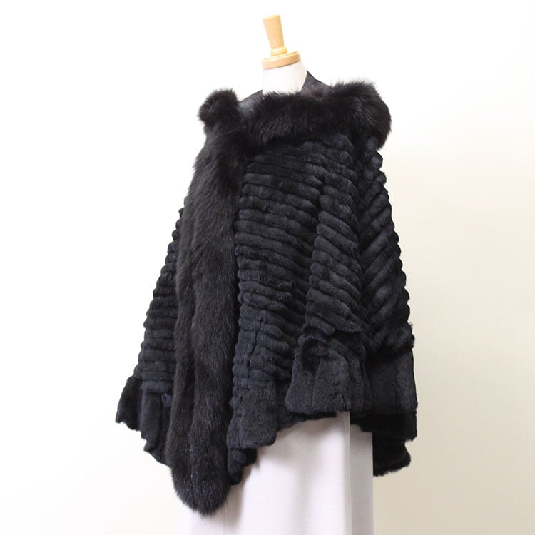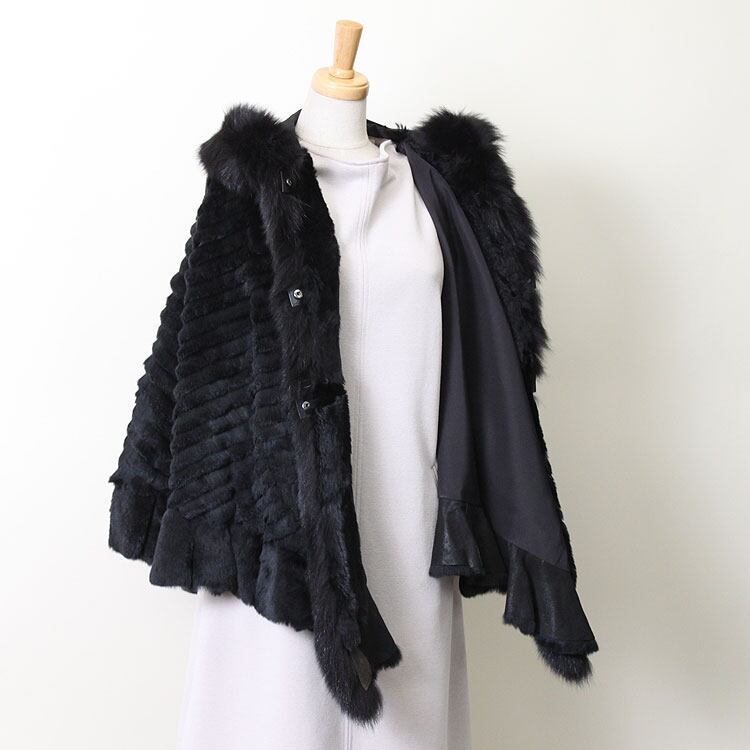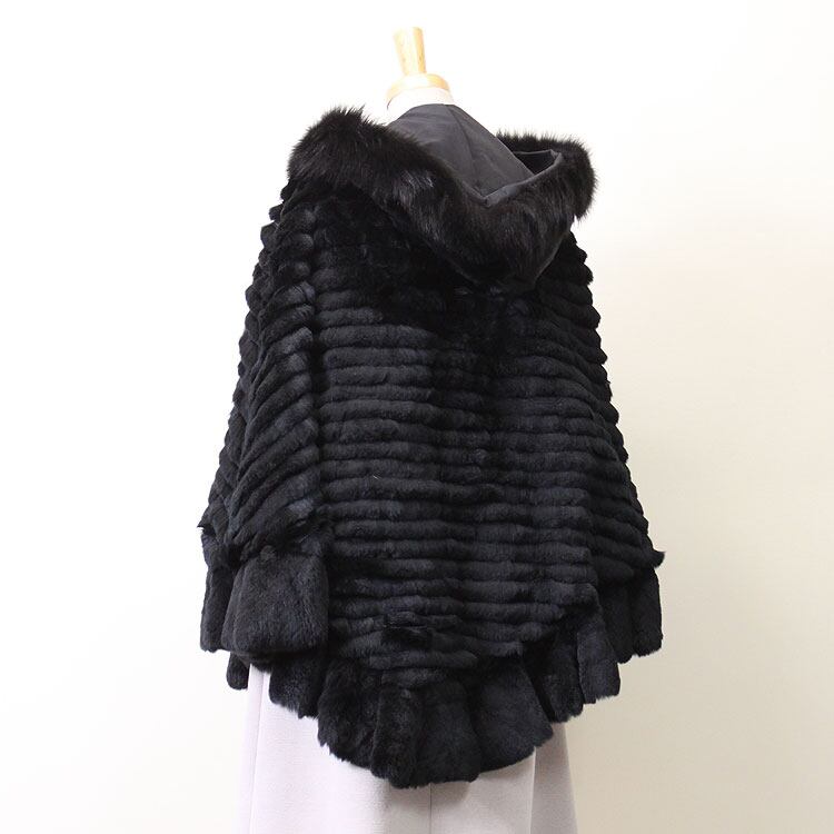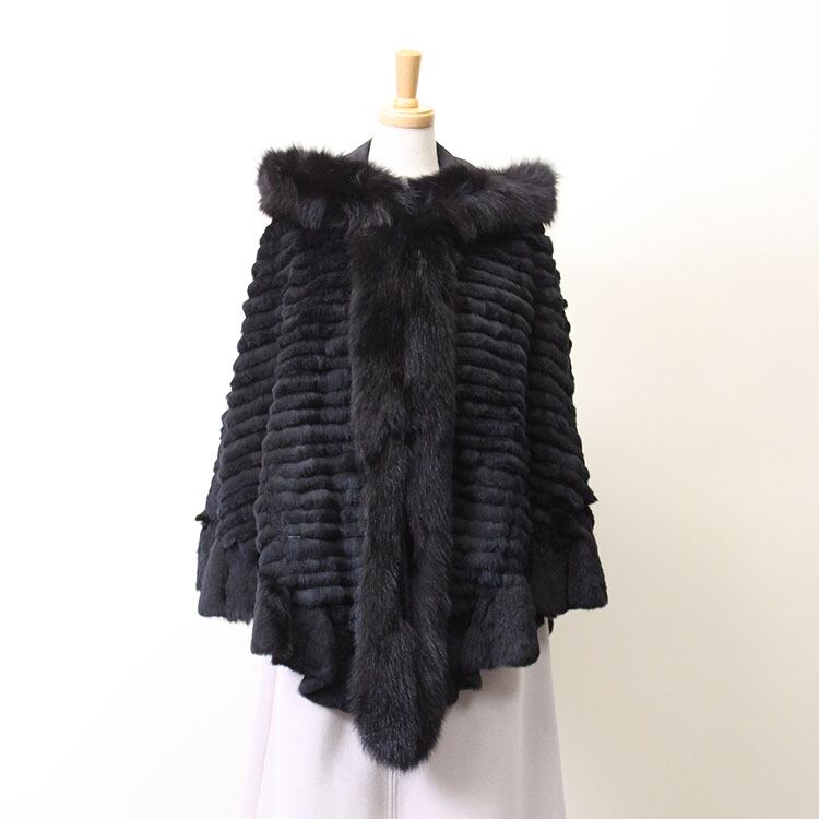 RX6127ABK1063 フォックス トリミング レッキスラビット ファー ケープ ブラック 送料無料 レディース ギフト プレゼント