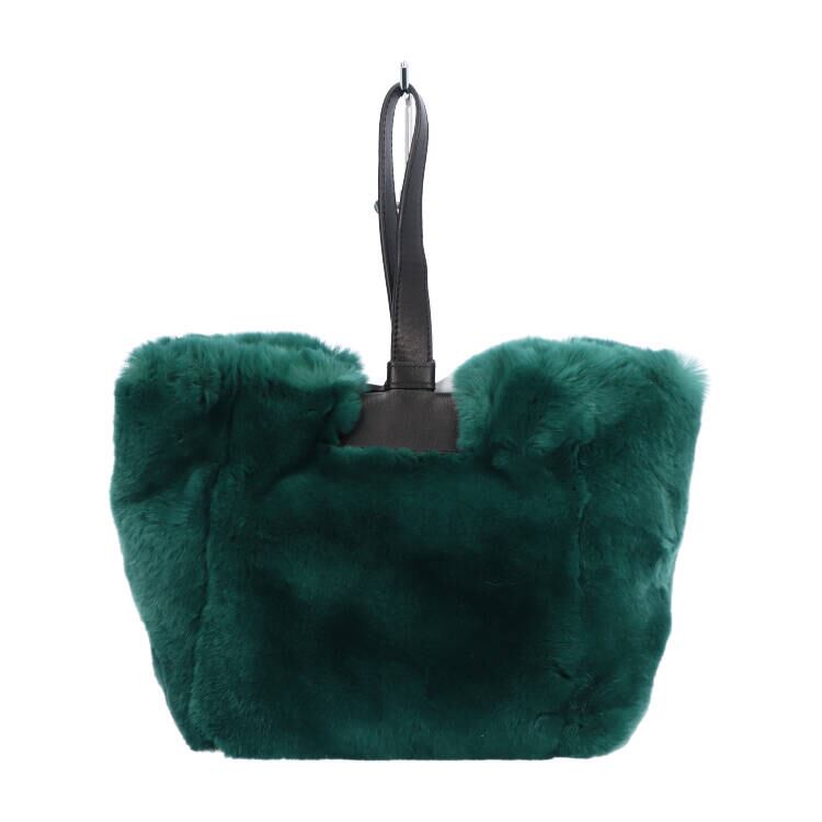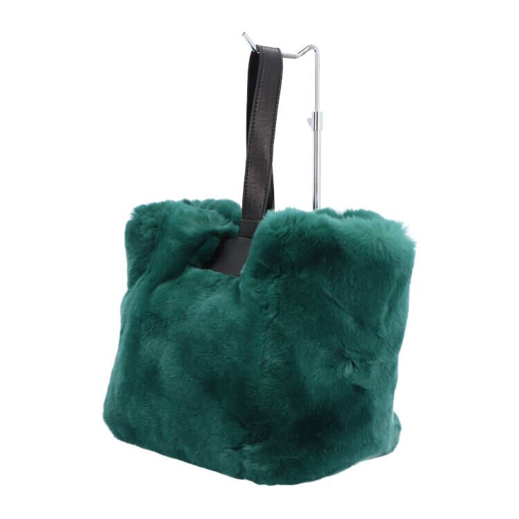 レッキスラビットファー ハンドバッグ トートバッグ グリーン レディース ギフト プレゼント ワンショルダー 送料無料