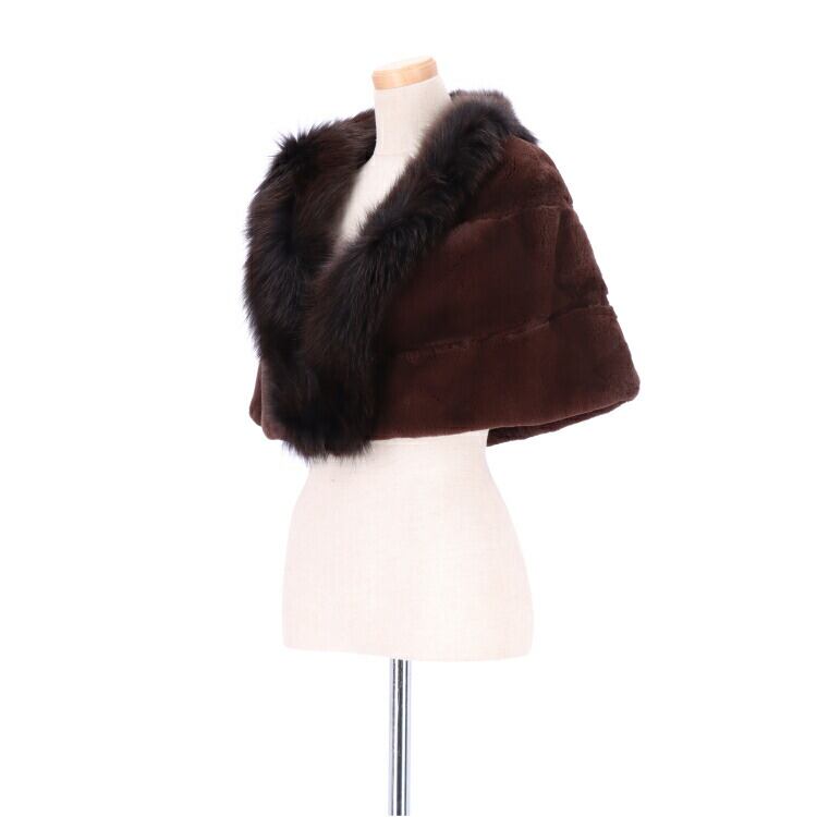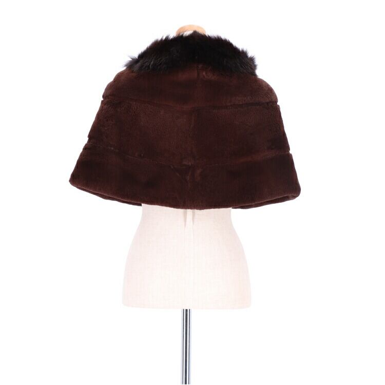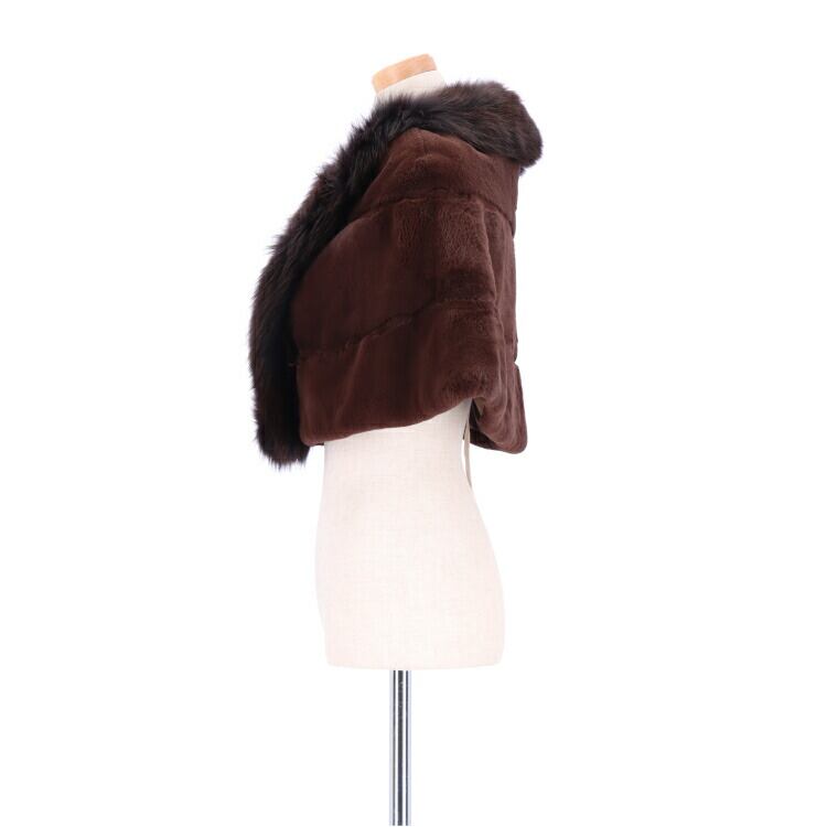 RX70LXACH1037 フォックス トリミング レッキスラビット ファー ケープ チョコレートカラー 送料無料 レディース ギフト プレゼント