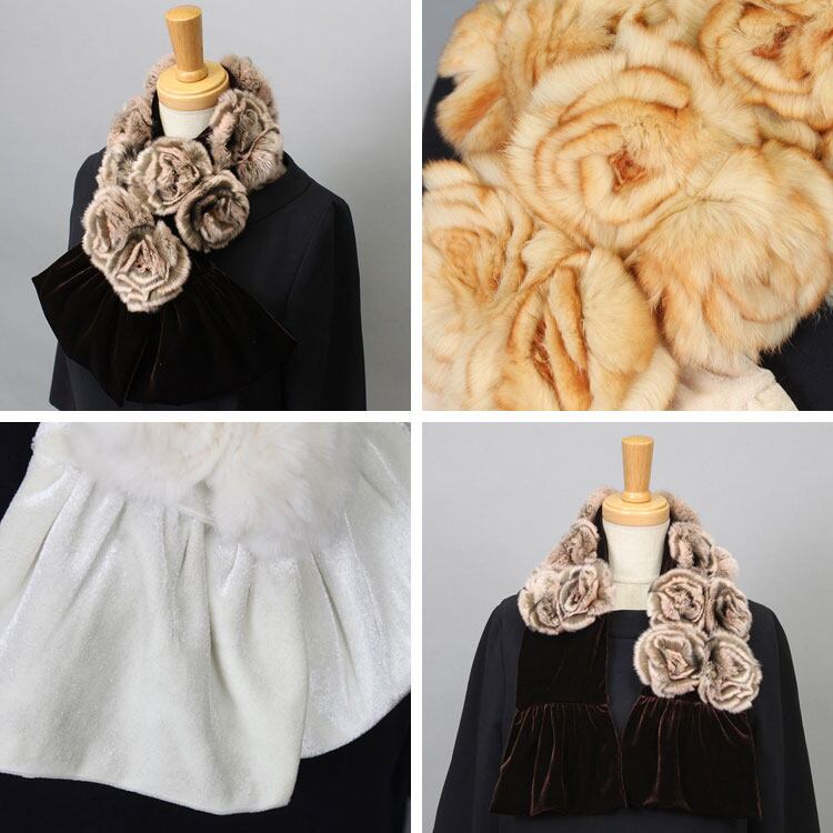 レッキスラビット ・ ベルベット コサージュ ファー マフラー 送料無料 レディース ギフト プレゼント
