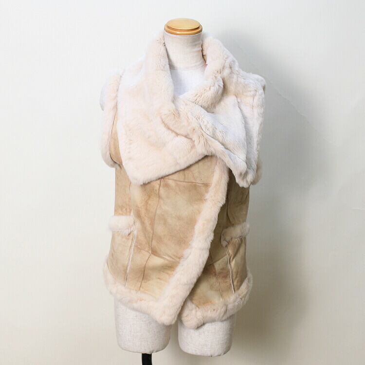RX7385ABE1063 レッキスラビット Wフェイス ファー ベスト ベージュ 送料無料 レディース ギフト プレゼント